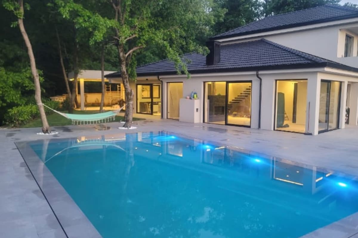 Una encantadora y tranquila villa de lujo de 4 dormitorios ubicada a solo 15 minutos del centro de la ciudad de Tirana en uno de los vecindarios más exclusivos de tirana. Tiene capacidad para hasta 13 personas. Suite 1: cama tamaño king y baño privado Suite 2: cama tamaño king y baño privado Dormitorio 3 - cama tamaño queen y 2 camas individuales Dormitorio 4 - Cama tamaño queen y 1 cama individual Sala de estar: 2 sofás cama cómodos Piscina privada, jacuzzi climatizado, jardín privado, parrilla. A 24 minutos del aeropuerto de Tirana.