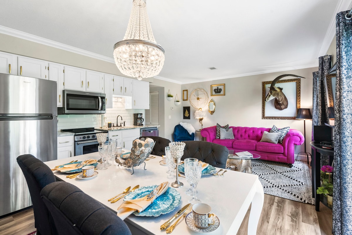 ¡Este apartamento es para ti y para tu pareja! ¡Tómate un tiempo para relajarte y pasar un tiempo muy necesario juntos! A solo 6 millas de Silver Dollar City. Justo en el corazón de la hermosa Branson, Missouri, esta acogedora suite King es perfecta para escapar unos días. Con wifi gratuito, Chrome Cast, bañera de hidromasaje y lavadora y secadora en el alojamiento, ¡puedes pasar tanto o tan poco tiempo dentro como desees! Con un registro de entrada y salida fácil, té/café gratis y sin escaleras, ¡no puede ser mejor!
