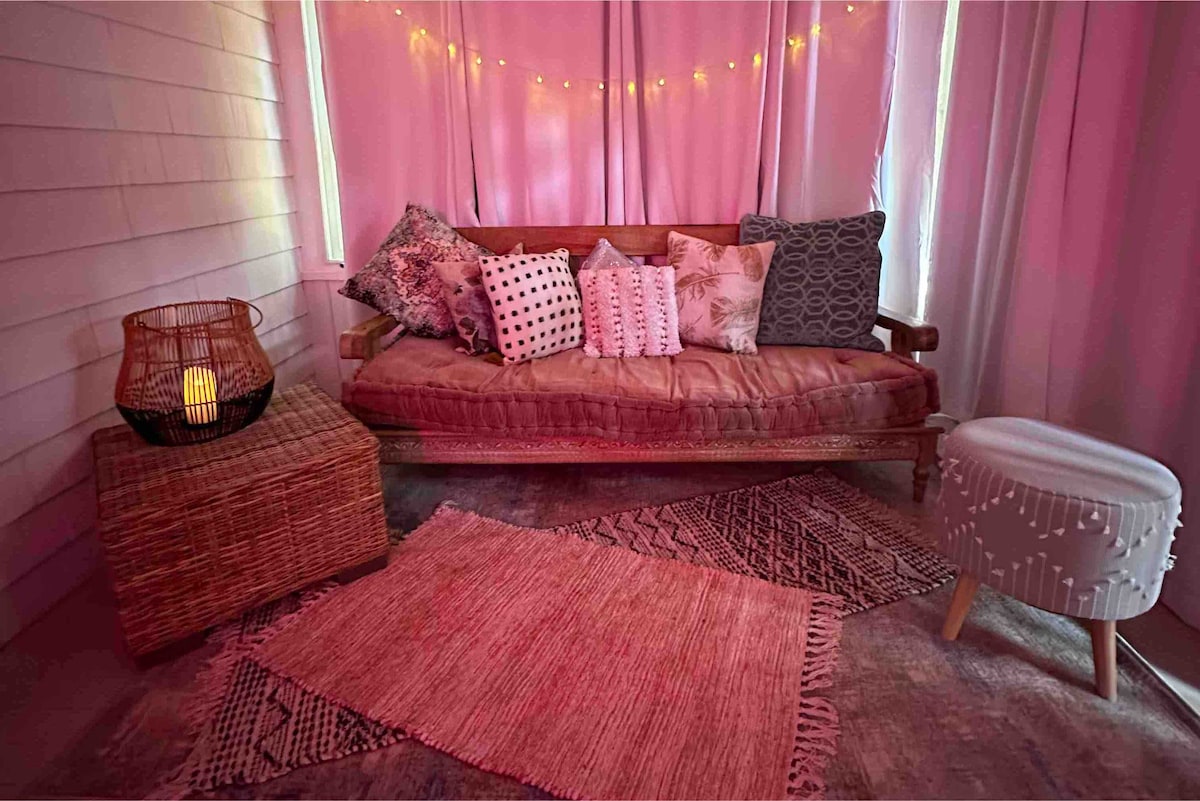 La adorable cabaña amarilla se encuentra en el corazón de las montañas Pocono. ¡A solo 2 horas de Nueva York y Filadelfia, una divertida y nostálgica escapada te espera! Camp Pocono Pines es una propiedad de campamento de 100 años y amorosamente renovada con 6 casas de campo de diseño único. Esta lista es para la cabaña amarilla, una casa de 1 dormitorio y 1 baño con una paleta de colores negro/neutro, papel pintado peculiar y muchos elementos de diseño inspiradores.