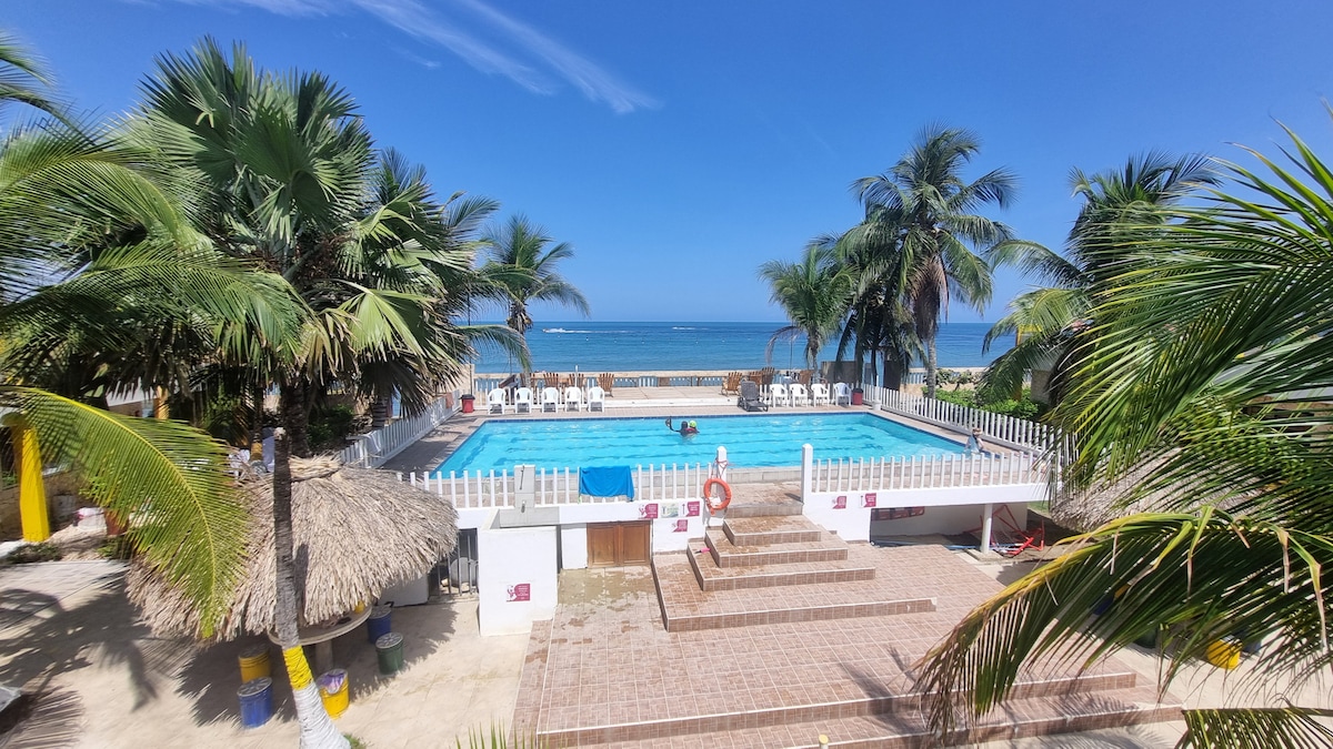 Relájate con toda la familia en este tranquilo lugar para quedarse. Cabaña frente al mar, con piscina privada y excelentes espacios para disfrutar de unos días en la playa. El valor Incluye una señora que les ayuda con la cocina (cocina delicioso) y un aseo general de la cabaña!