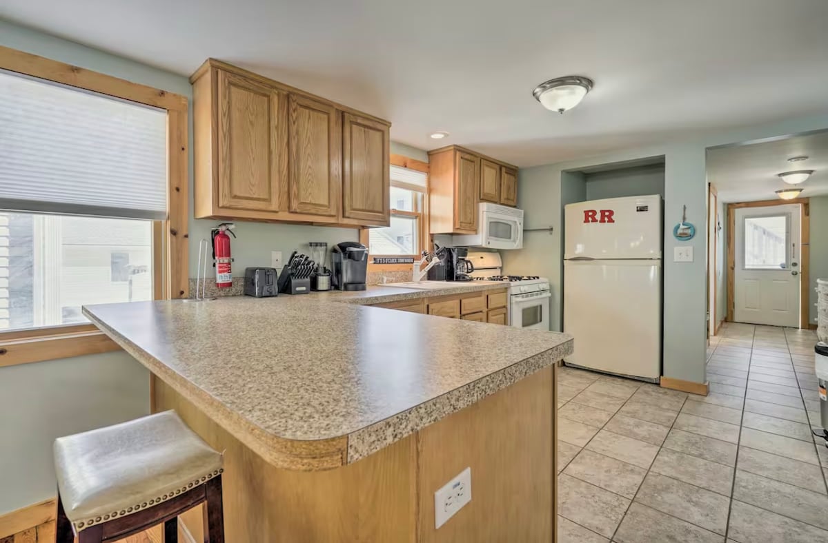 🌟 ¡Tranquilidad cerca de la costa! Escapada remodelada de 2 dormitorios a pocos pasos (0,4 millas) de playas, senderos, tiendas y diversión. Relájate en el jacuzzi, asa debajo del pabellón o acurrúcate junto a la chimenea. ¡Estancias largas = grandes descuentos de hasta el 50%! 💻🔥🏖️ ¡SEIS INSIGNIAS DE PLAYA DE TEMPORADA CON PUERTA OCEÁNICA Y 2 INSIGNIAS DE ALMOHADILLA DE CHAPOTEO INCLUIDAS!