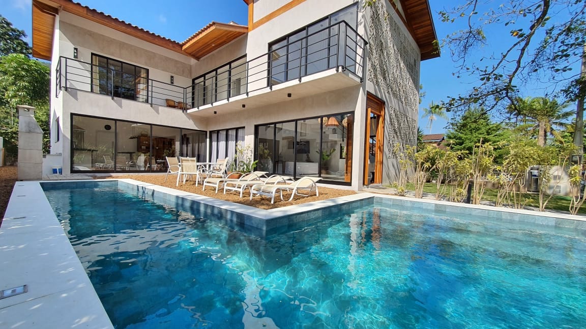 Casa nueva, moderna, de alto nivel, diseño de autor y vistas inigualables. Piscina infinita, climatizada, con vistas al mar y a 180º de las playas de Toque Toque Grande, Calhetas y a la puesta de sol. Entre octubre y marzo, el sol se pone junto al mar. Ofrece absoluta privacidad, estando inmerso en el Bosque Atlántico, pero con fácil acceso por carretera. Seguridad total con supervisión remota. Lugar único y tranquilo, con mucho estilo y comodidad. Paga en 6 cuotas sin intereses
