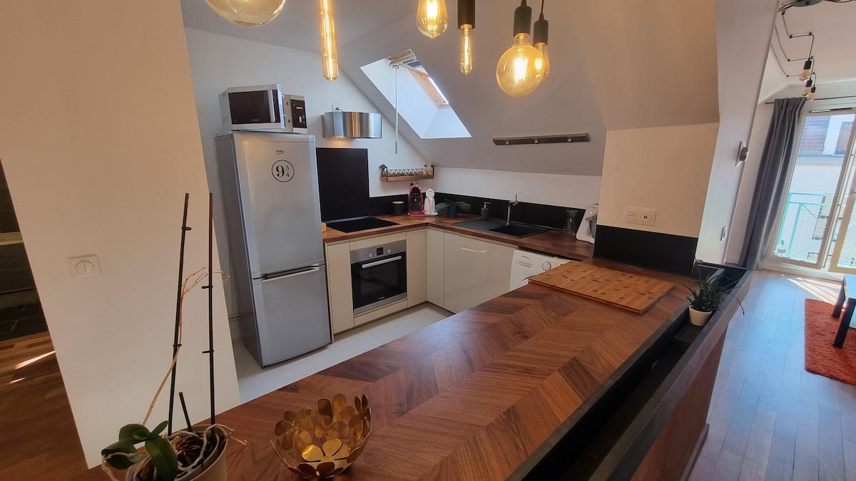 Encantador estudio de 15 m2 contiguo a nuestra casa cuya entrada es privada, renovado y decorado al estilo industrial que ofrece un fácil acceso a todos los sitios (a 20 minutos de Disneyland París, a 2 km de la Base de Vaires - JO) y a los servicios. Paradas de autobús a 150 metros, estación de tren Vaires - Torcy a 10 minutos a pie (París Gare de l'Est 20 minutos). Comercios a 5 minutos a pie: Carrefour Express abierto los 7 días de la semana de 8:00 a 20:00, panadería, farmacia, peluquería, estanco, supermercado, pizzería, hospital, parque y bosque...