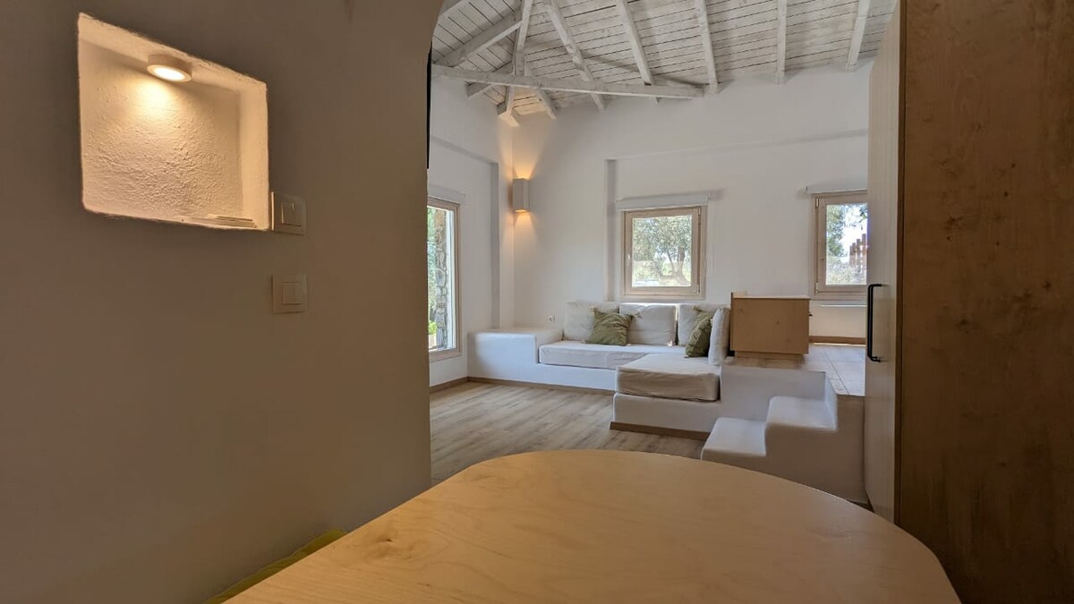 Una experiencia única en el corazón de Sithonia, entre los picos del Olimpo y Athos. En una propiedad de 15 acres con un olivar familiar de 200 años de antigüedad y acceso exclusivo a un cañón de belleza salvaje, construimos una residencia única en toda Grecia enteramente de piedras fluviales y marinas, rodeada por el azul del mar y el verde del bosque. Está a 5 minutos de las playas más famosas de Sithonia, Lagomandra, Elia, Spathies, Kalogria, Kovgiou.