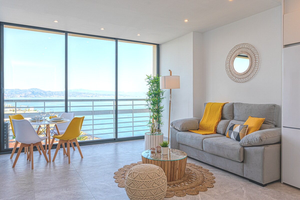 Disfruta de una experiencia de lujo en este bonito, moderno y céntrico apartamento, a 200 metros de la playa y con vistas al mar, terraza acristalada para invierno y cristales totalmente plegables para verano, en pleno centro con todas las tiendas, restaurantes y lugares de ocio cerca, tren y taxi a menos de 50 metros. Bonita piscina comunitaria en temporada de verano.