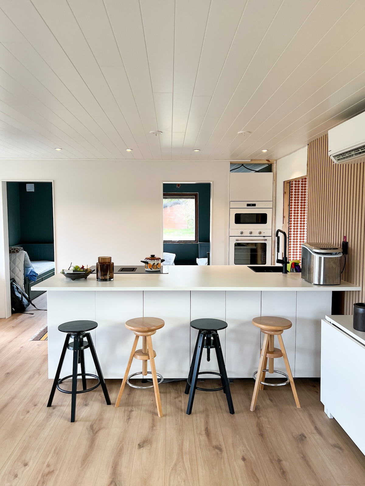 Välkommen till ett nybyggt & modernt arkitektritat hus direkt vid havet Rymliga ytor med 4m takhöjd i vardagsrum ger en luftig och lyxig känsla Fullt utrustat kök med diskmaskin Helkaklat badrum med tvättmaskin SmartTV, perfekt för streamingtjänster Dedikerad arbetsplats med höj/sänkbart skrivbord – perfekt för att kombinera arbete med semester 3 sovrum för familj eller vänner. Ta morgondopp, njut av solnedgångar och hyr jacuzzi, cyklar, handdukar och lakan för all-inclusive-känsla!