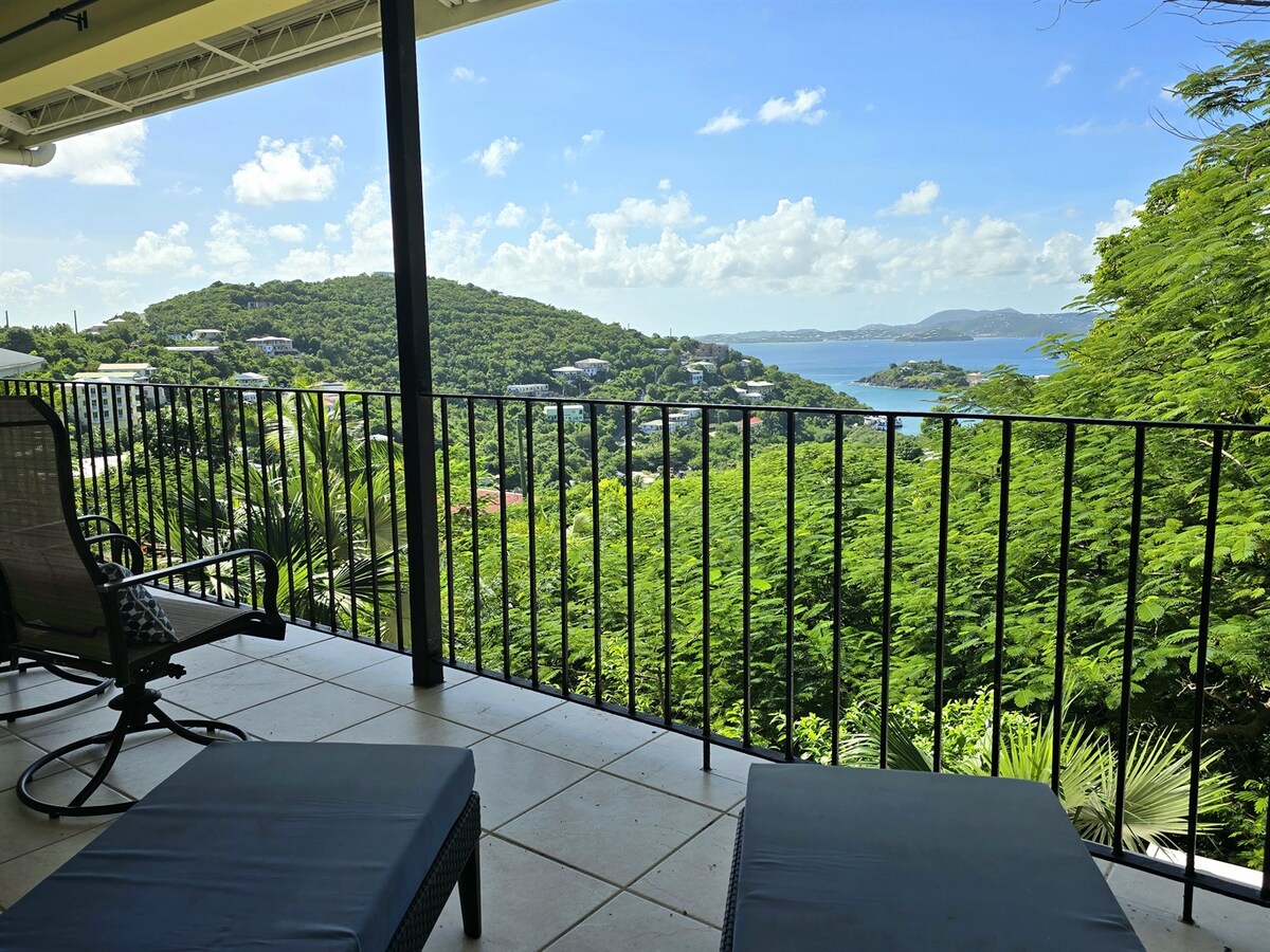 Esta espaciosa unidad («Mango») te proporcionará todo lo esencial para tus vacaciones en St John. ¡ADEMÁS ENERGÍA DE BATERÍA DE RESPALDO! Hay 2 dormitorios con aire acondicionado y camas tamaño king, una cocina culinaria totalmente equipada y un comedor. La espaciosa sala de estar tiene un sofá cama tamaño queen, wifi, televisión y espacio de trabajo dedicado. Disfruta relajándote en tu patio privado con vistas a las hermosas aguas de las Islas Vírgenes y al Parque Nacional. ¡Todo el equipo para la playa está incluido y también hay una lavadora y secadora en la unidad!