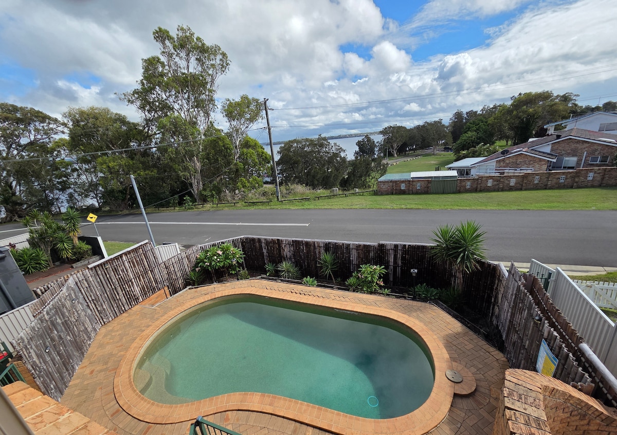 Casa temática costera recientemente renovada con acceso directo al agua en el lago y piscina privada. Orientación norte en una ubicación tranquila al final de un largo viaje lejos de la carretera con vistas inigualables al lago. Mira cómo se deslizan los pelícanos y los cisnes negros. Situado en la costa central a una hora y media de Sídney y cerca de muchas playas y servicios. Un embarcadero público está a dos puertas para botes de lanzamiento y la casa tiene una pequeña rampa para botes para pescar/lanzar kayaks.