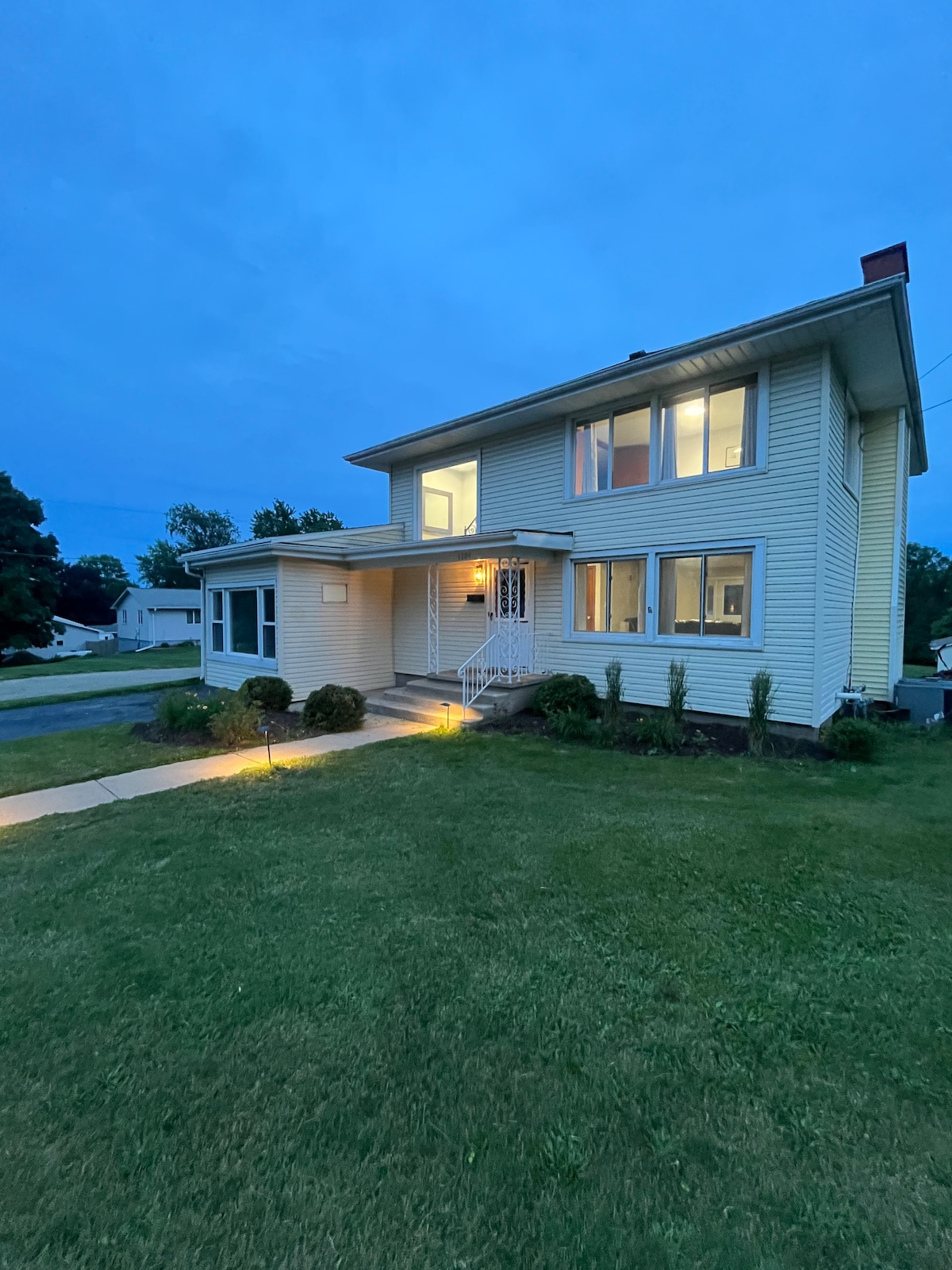 Lovely Farmhouse Style 2 bedroom home located across from park. Newly decorated with fully equipped country style kitchen. The master bedroom has adjustable queen size bed while second bedroom has 2 twin beds. The house is great for a family, two couples or a girls weekend to Historic Bishop Hill or destinations Psycho Silo, Goods Furniture or Horse shoes at Blackhawk College East.