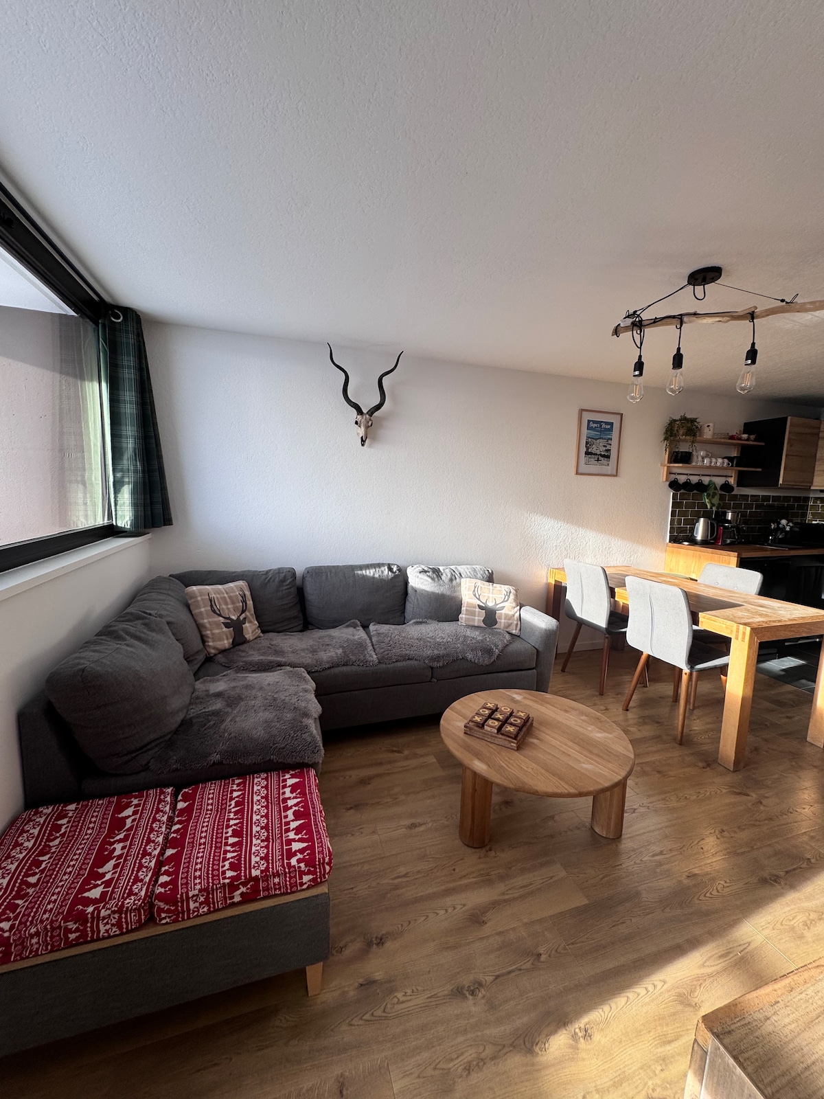 Logement parfaitement situé offre un accès à tous les sites et commodités. Petit plus linge fourni à partir de 7 nuitées ,lits fait à l’arrivée et ménage inclus...des vrais vacances !!! Très beau T3 rénové situé tour de la biche au 16eme étages . Vue imprenable sur la station . La résidence est très appréciée pour sa proximité de l’hyper centre et du départ ski au pied . Descritif: Exposé sud Chambre 1 lit double 160 Chambre 2 lits superposés Salle de douche Casier à ski et wifi Balcon