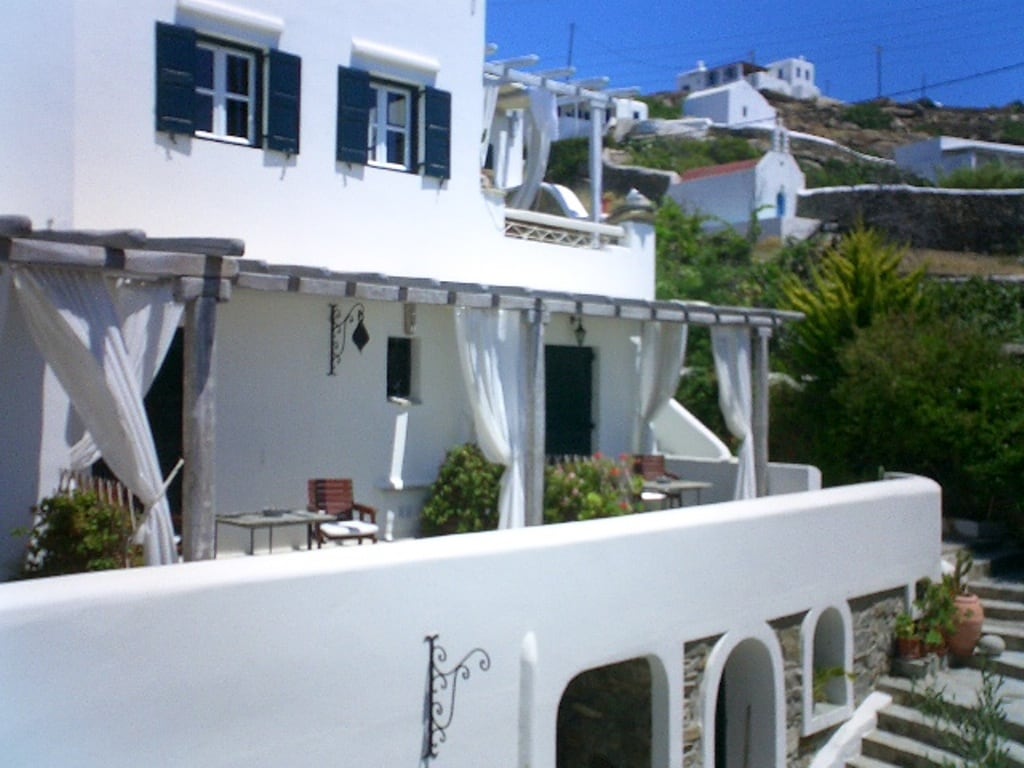 The seductive,brand new house is a luxurious heaven for tranquil repose, The Myconian's architecture house consists of 2 bedrooms with king size double beds (splittable to single beds), 2.5 bathrooms, living room with 1 sofa , satellite TV, free WI FI Internet - dining room, fully equipped kitchen, terrace with wooden table, outdoor jacuzzi , garden and private parking area.