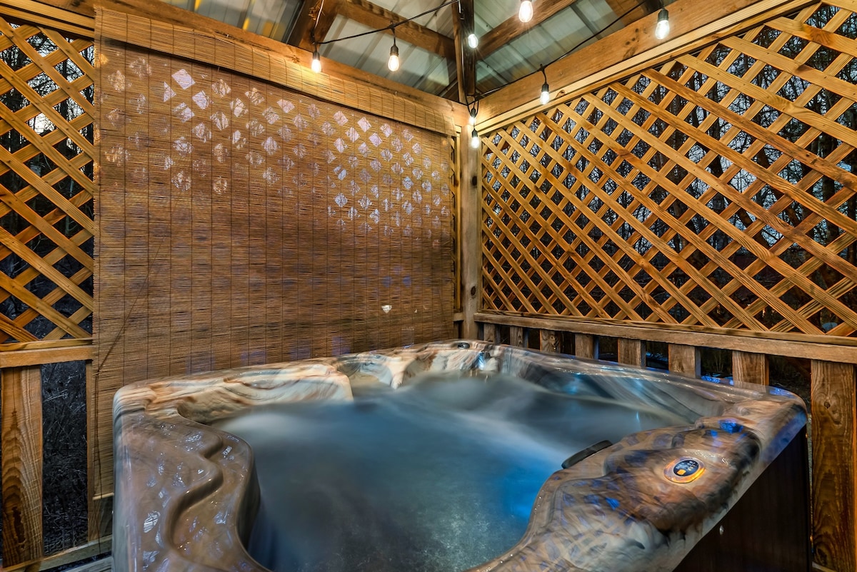 Bienvenido a Shady Mountain Hideaway, tu refugio sereno en el corazón de las Smokies. Despiértate con impresionantes vistas a la montaña, disfruta de un refrescante baño en tu piscina cubierta climatizada privada y relájate en el jacuzzi al aire libre. Mientras se pone el sol, reúnete alrededor de la chimenea para ver s'mores, historias y contemplar las estrellas. En el interior, una acogedora sala de estar y una cocina moderna totalmente equipada ofrecen el entorno perfecto para la comodidad, la conexión y la relajación sin esfuerzo.