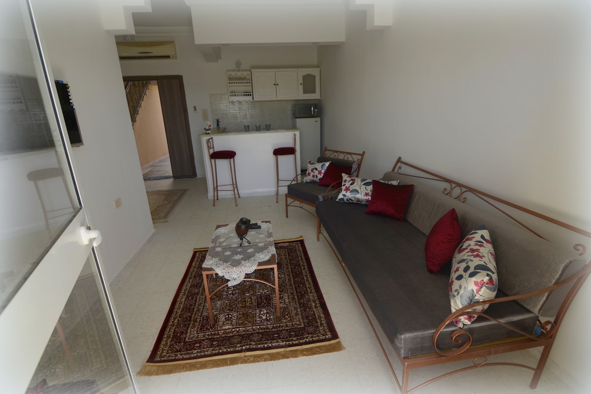 Situado a 1 km del aeropuerto y a 20 minutos andando del centro de la ciudad y de los Oasis. Diar Aroma Lounge ofrece un apartamento S+1, de alto standing con vistas al campo de golf. Wifi gratuito. Estacionamiento gratuito y seguridad garantizada: sistema de videovigilancia y alarma. ¡100% equipado! ¡Muy agradable!