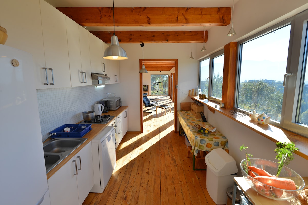 Construida en medio de la naturaleza, nuestra casa de vacaciones consta de 2 habitaciones dobles y un apartamento, con una magnífica vista hacia el bosque circundante, situada justo al pie de las montañas Bucegi, en Moeciu, a solo 5 km del castillo de Bran. Las mañanas pueden comenzar en la hamaca o en la terraza, disfrutando de un café o té natural de nuestra parte y admirando los alrededores de cuento de hadas. La casa de vacaciones también cuenta con una zona de barbacoa, sistema de música, NETFLIX, PS4, juegos de mesa y plazas de aparcamiento cubiertas.