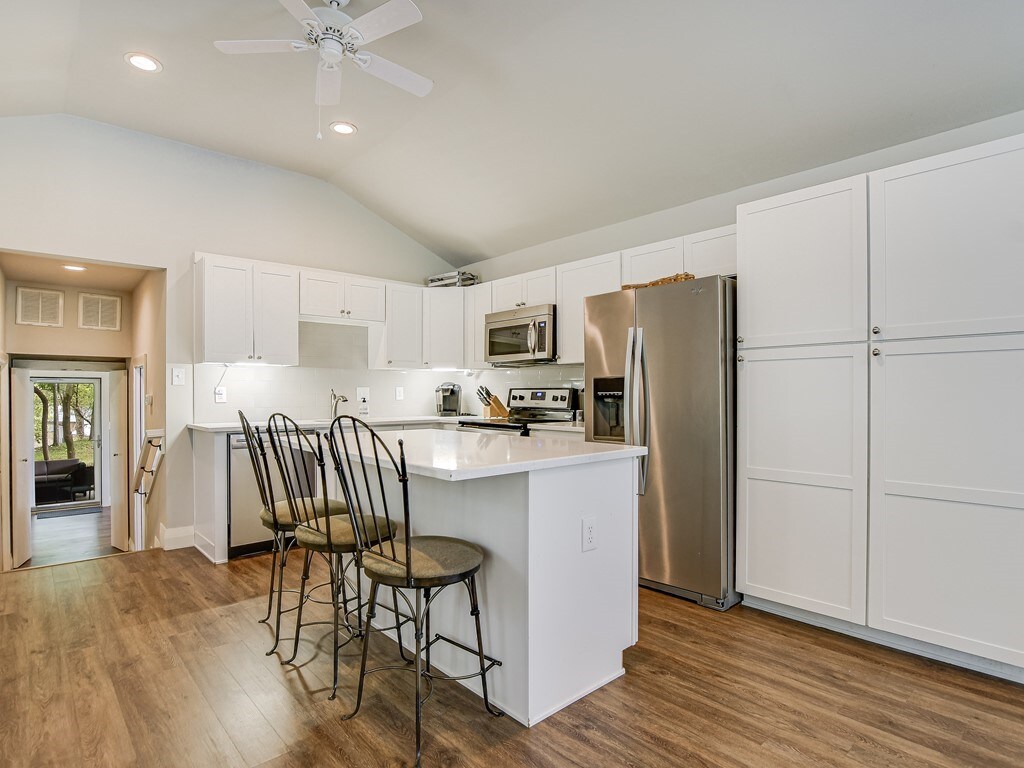 Alójate en un santuario privado bañado por el sol junto a una hermosa reserva natural y a pocos minutos de las mejores atracciones de Austin. Disfruta de la tranquilidad de las habitaciones bien equipadas con cálidos acabados de madera y una amplia terraza en el patio trasero para cenar y descansar a la sombra. Duerme profundamente en la cama tamaño king Casper California y la lujosa cama tamaño queen. Admira la vista del patio trasero desde el sofá de roble iluminado por el sol. Prepara una comida memorable en la cocina.