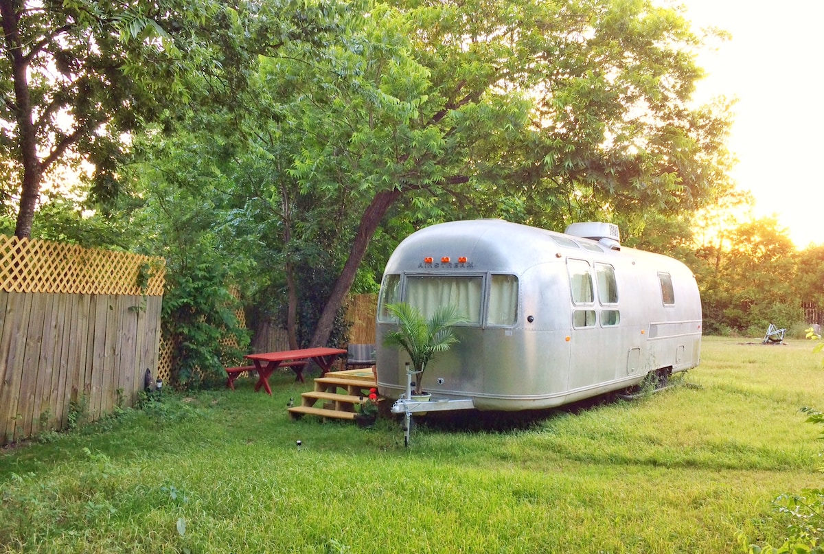 Mencionado como uno de los mejores Airbnb de Austin por Architectural Digest. Remolque Spartan vintage recién remodelado con baño privado adjunto (NO compartido) en un terreno boscoso y aislado de 3,5 acres en el sur de Austin. Terraza privada, chimenea, cama tamaño king, wifi rápido y piscina privada de tanque de almacenamiento (marzo-octubre). Echa un vistazo a nuestras otras unidades desde nuestra página de perfil de Airbnb. Música en vivo al aire libre y camiones de comida al lado. A solo 10 millas del centro de ATX.