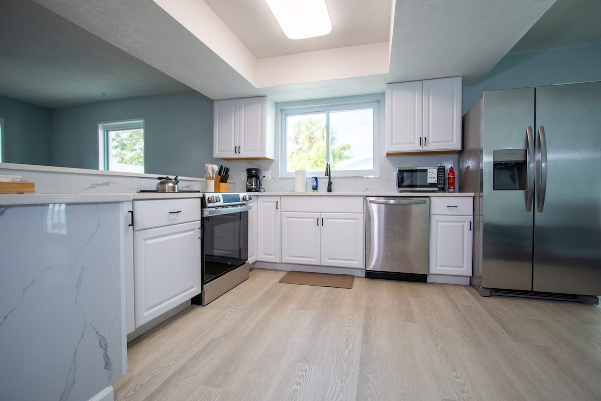 Retiro de playa recién renovado de 4 dormitorios, ¡a pasos de la arena!