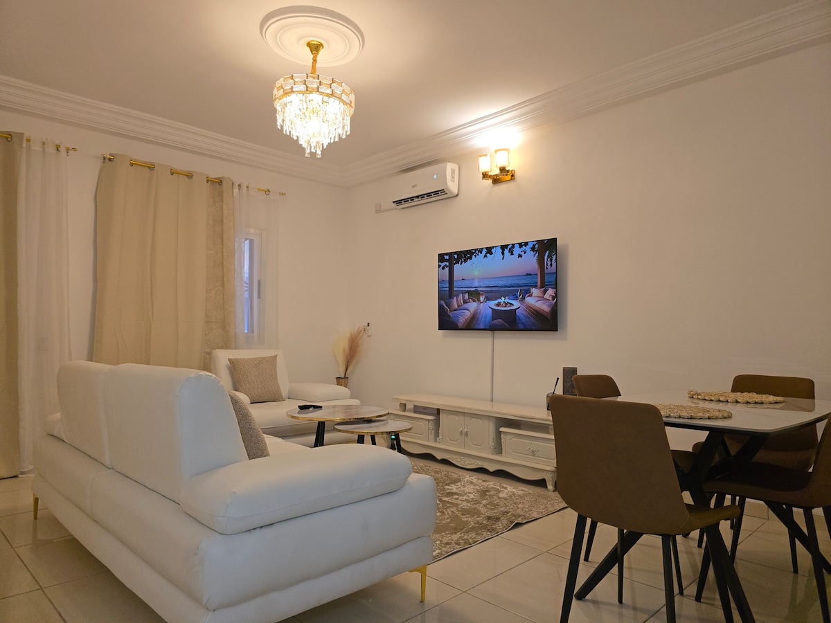 Departamento de 1 dormitorio con balcón 🌇 perfecto para relajarse por la mañana o al atardecer. El departamento está totalmente equipado para estadías cortas y prolongadas, con wifi de alta velocidad 📶, una cocina completa 🍳 y cómodos espacios de estar diseñados para la comodidad y la privacidad. Ubicado en un edificio residencial cerrado y seguro con vigilancia las 24 horas, los 7 días de la semana 🛡️. Ideal para familias, viajeros de negocios o amigos que buscan comodidad, seguridad y una estancia céntrica en Abiyán.
