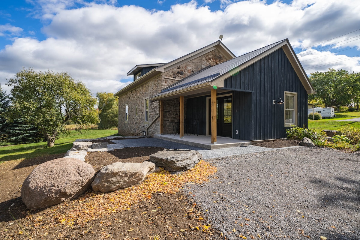 ¡Te damos la bienvenida a nuestra casa de adoquines de 1845! Completamente renovada y reconstruida pensando en tu comodidad. La llamamos casa de campo, pero ahora es una casa muy bien construida con más de 100 acres de campos, estanque y senderos para explorar. Se incluye un pase de verano de Ontario Parks para tu uso. Cuando reserves, verás que el HST se añade a tu tarifa por noche y a la tarifa de limpieza, y que solo se añade un impuesto municipal sobre el alojamiento a tu tarifa por noche. Las estancias de más de 29 días están exentas de ambos impuestos.