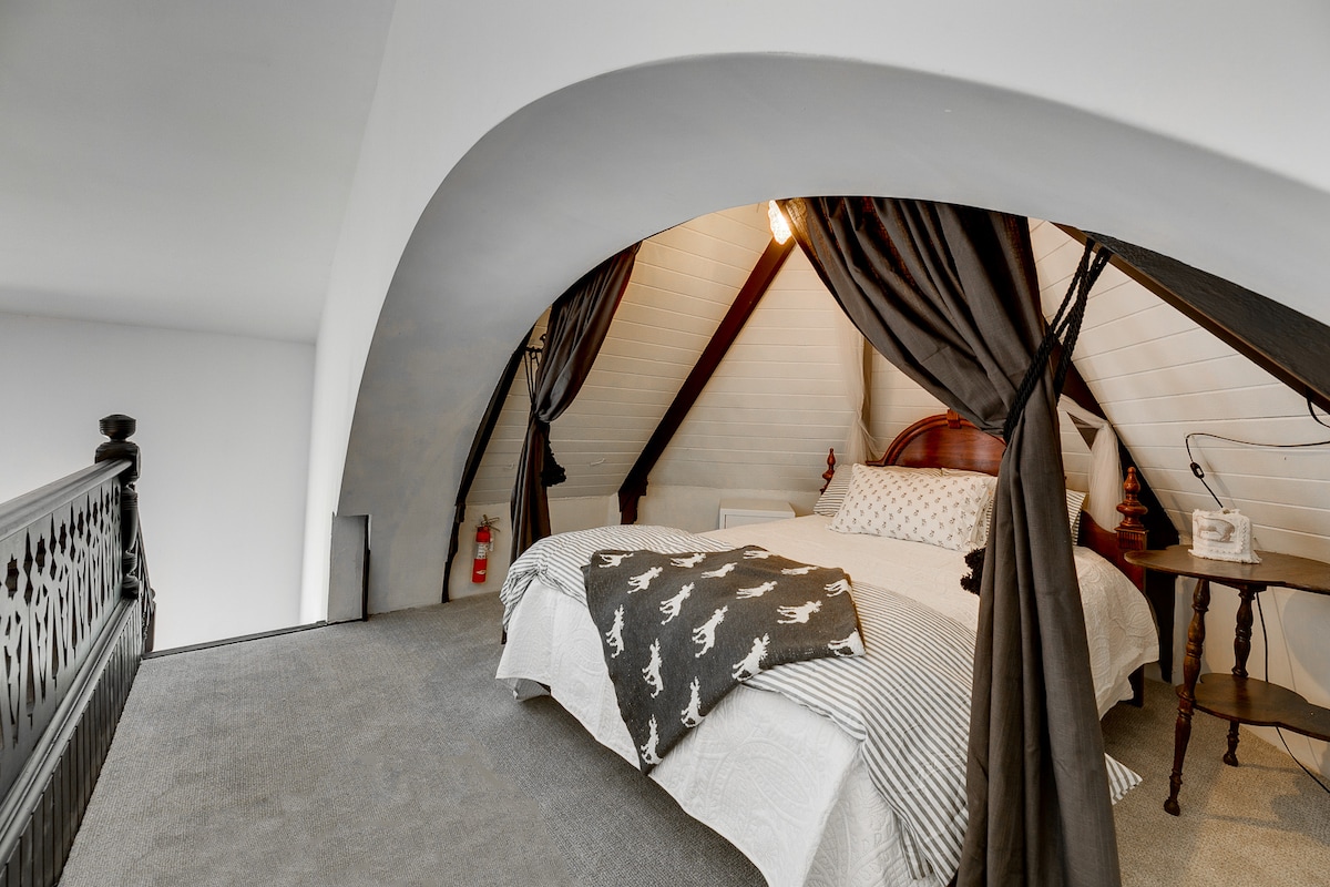 Impresionante iglesia convertida de 1800 en el condado de Prince Edward con comodidades modernas en una gran propiedad. Este espacio único de 4 dormitorios ha sido restaurado para darle un toque moderno con todo el encanto único de antaño. Ubicada en 3 acres, esta propiedad da a la bahía de Quinte. A solo 15 minutos del viñedo más cercano, a 20 minutos de Wellington y Bloomfield. La propiedad incluye wifi, Netflix, PrimeTV, Sonos, sábanas/toallas limpias, café, lavandería, leña para la chimenea de leña y una chimenea de gas, ¡y mucho más!