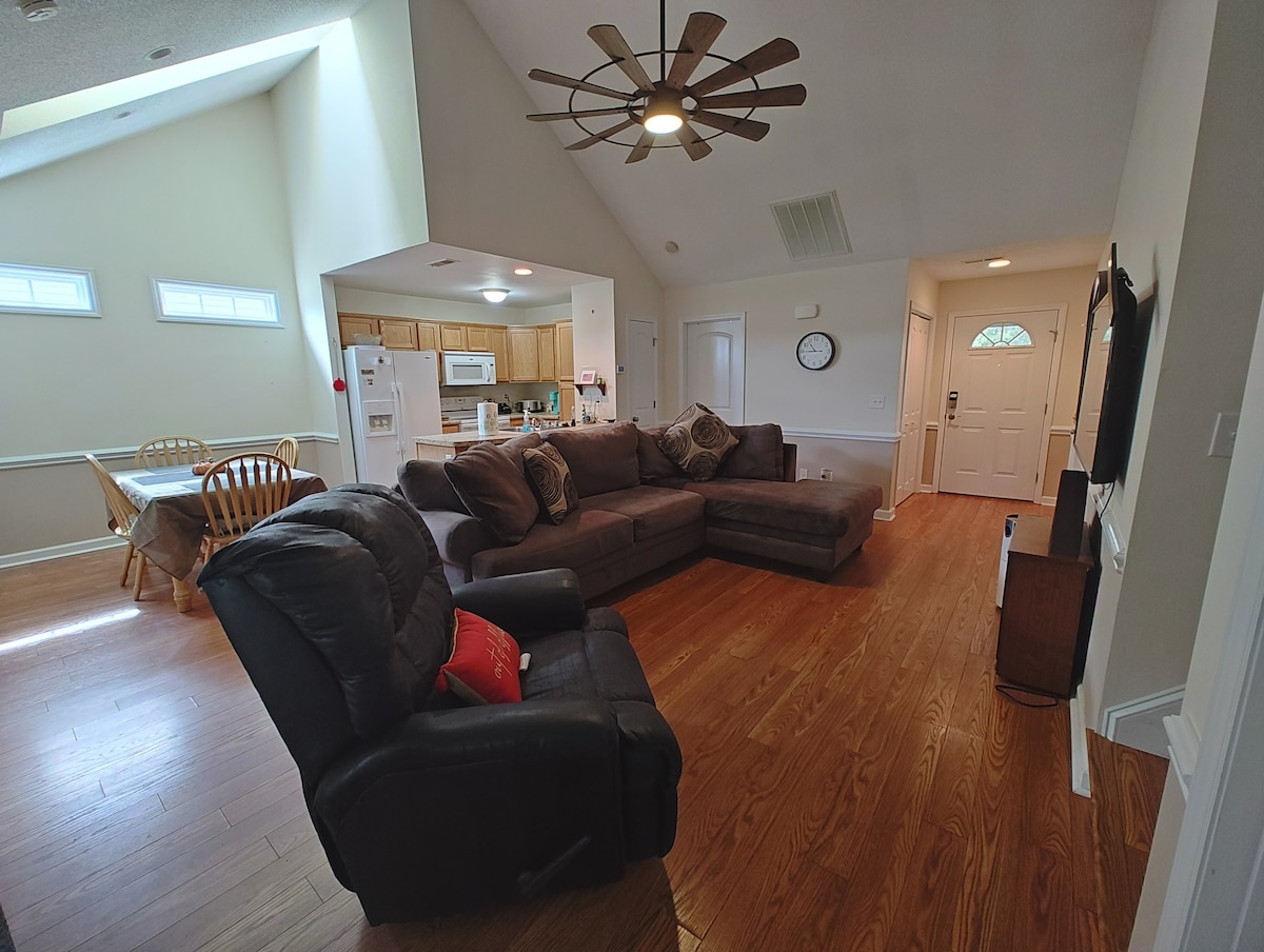 Adorable casa de campo renovada de 1953 ubicada en el corazón de New Bern. Camina hasta la tienda de comestibles. A 1,4 millas del centro comercial Twin Rivers y Wal Mart. A dos millas del centro histórico y a media milla del Centro Médico Regional de Craven. Restaurantes cercanos. Barrio transitable. La sala de estar tiene un nuevo televisor inteligente, wifi y está recién amueblado. La casa cuenta con dos dormitorios, dos camas individuales y una queen con ropa de cama nueva y colchones nuevos. Bañera de baño con ducha y lavadora y secadora. Cocina con encimeras de granito e isla. La cocina tiene capacidad para cuatro personas con comida en la mesa. Keurig una taza de café, aperitivos para el desayuno, café, agua embotellada de cortesía. Todos los electrodomésticos nuevos. Se proporciona todo lo que necesitas para una estancia cómoda. Patio trasero vallado con estacionamiento en la entrada de la terraza para dos vehículos. El check-in es a las 3:00 p. m. Salida a las 11:00 a. m.