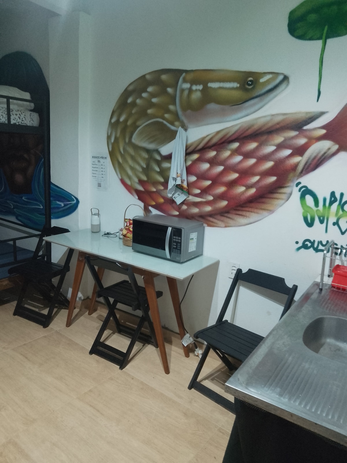 Disfruta de comodidad y practicidad en este APARTAMENTO COMPLETO con 2 dormitorios (1 cama doble, 2 camas individuales - ropa de cama), baño, cocina completa, área al aire libre con fregadero y estacionamiento. ¿Qué nos diferencia? ¡Desayuno y almuerzo recién hecho incluidos en la tarifa diaria! Excelente ubicación en Santa Tereza, cerca de supermercados, panaderías, iglesia y con fácil acceso al centro de Três Corações. ¡Ideal para familias o grupos que buscan comodidad y sabor en el viaje!