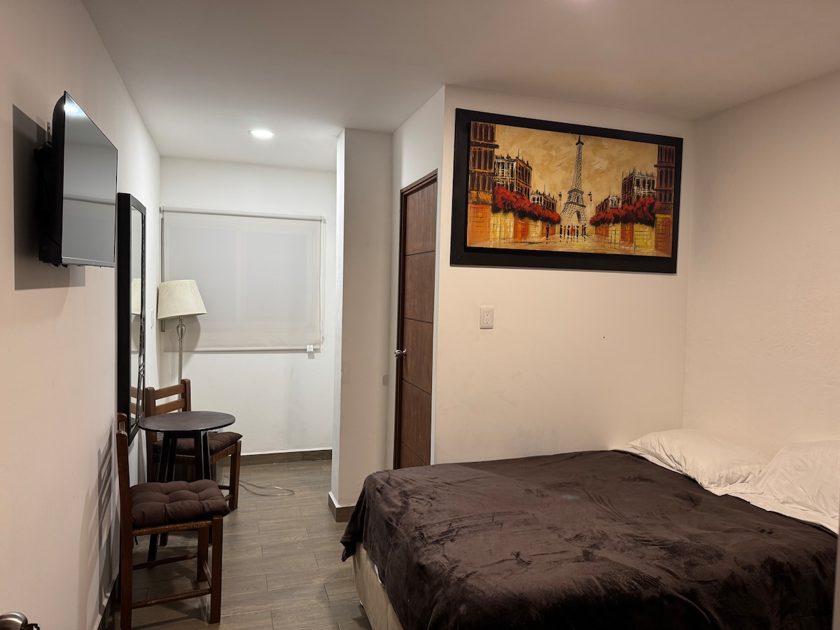 Departamento céntrico, iluminado y con excelente clima en un condominio de ambiente tranquilo, seguro y familiar, ideal para viajes de trabajo y para relajarse, no apto para fiestas. Cuenta con todo lo necesario para sentirse en casa. Cocina equipada, TV con aplicación para ver series y películas. Maravillosa vista a la catedral. Los muebles fueron diseñados especialmente para adaptarse al espacio y para la comodidad de los huéspedes.