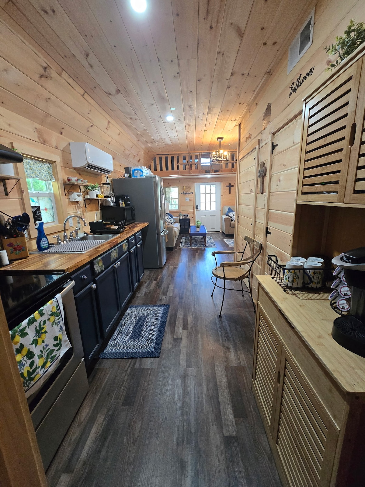 Cozy tiny house just 5 mins from Lake Barkley and 16 mins from historic downtown Cadiz. Sleeps 4 with a queen bed, loft full size bed, and comfy couch. Includes full kitchen, bathroom with walk-in shower, washer/dryer. Outside: fire pit, hammock, picnic table, grill, cornhole, and parking for 2 vehicles + boat. Near great dining, including the local favorite, The Fishing Hole.