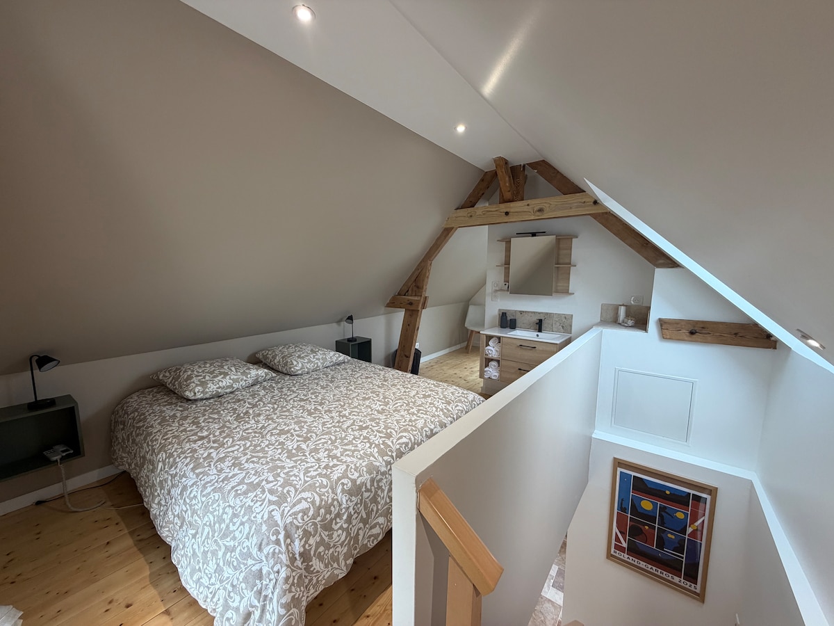 ¿Te apetece encontrarte para un momento de descanso? La Grange en Bruyères-et-Montbérault, pueblo con carácter situado a 7 km de la ciudad medieval de Laon es el lugar ideal. Un antiguo granero completamente renovado en estilo industrial: el encanto del ladrillo, la madera y la piedra hacen de este alojamiento un bonito nido acogedor de 110 m² con capacidad para 4 personas como máximo. ¡El espacio de bienestar exterior que consta de un baño nórdico te promete una relajación absoluta!