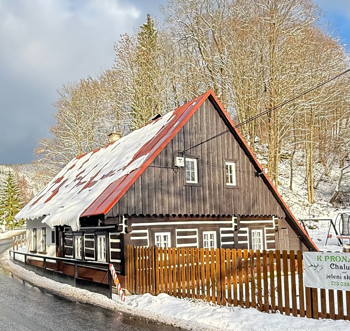 La casa de campo se encuentra en una zona aislada en la zona de protección del Parque Nacional Krkonoše. Fue construido en 1936 y está parcialmente renovado. Ahí puede acomodar a 8 personas. Toda la casa está a tu disposición. El precio incluye leña para calefacción, electricidad, limpieza, ropa de cama, toallas, té, café y la tasa turística. Se admiten mascotas por un suplemento de 150 CZK/noche, que se abonará durante la estancia. El acceso es cuesta arriba por un camino forestal. En invierno, aparcamos a 450 m por debajo de la colina.