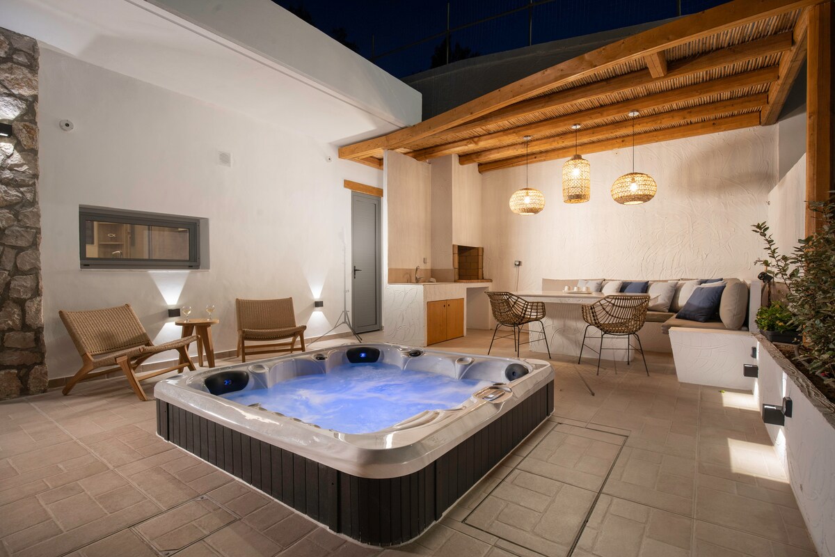 Step into the tranquility of Ninémia Sea Living, where the Aegean culture and the panoramic view of the endless azure sea await you! Equipped with all modern amenities, emphasis on the details, with spacious bright rooms and a large garden. Enjoy the outdoor heated 7seat jacuzzi, spend time in the gym, indulge in a relaxing massage and swim at the private beach located a few steps away. Perfect for those seeking serenity and rejuvenation, Ninémia provides the ultimate coastal getaway.