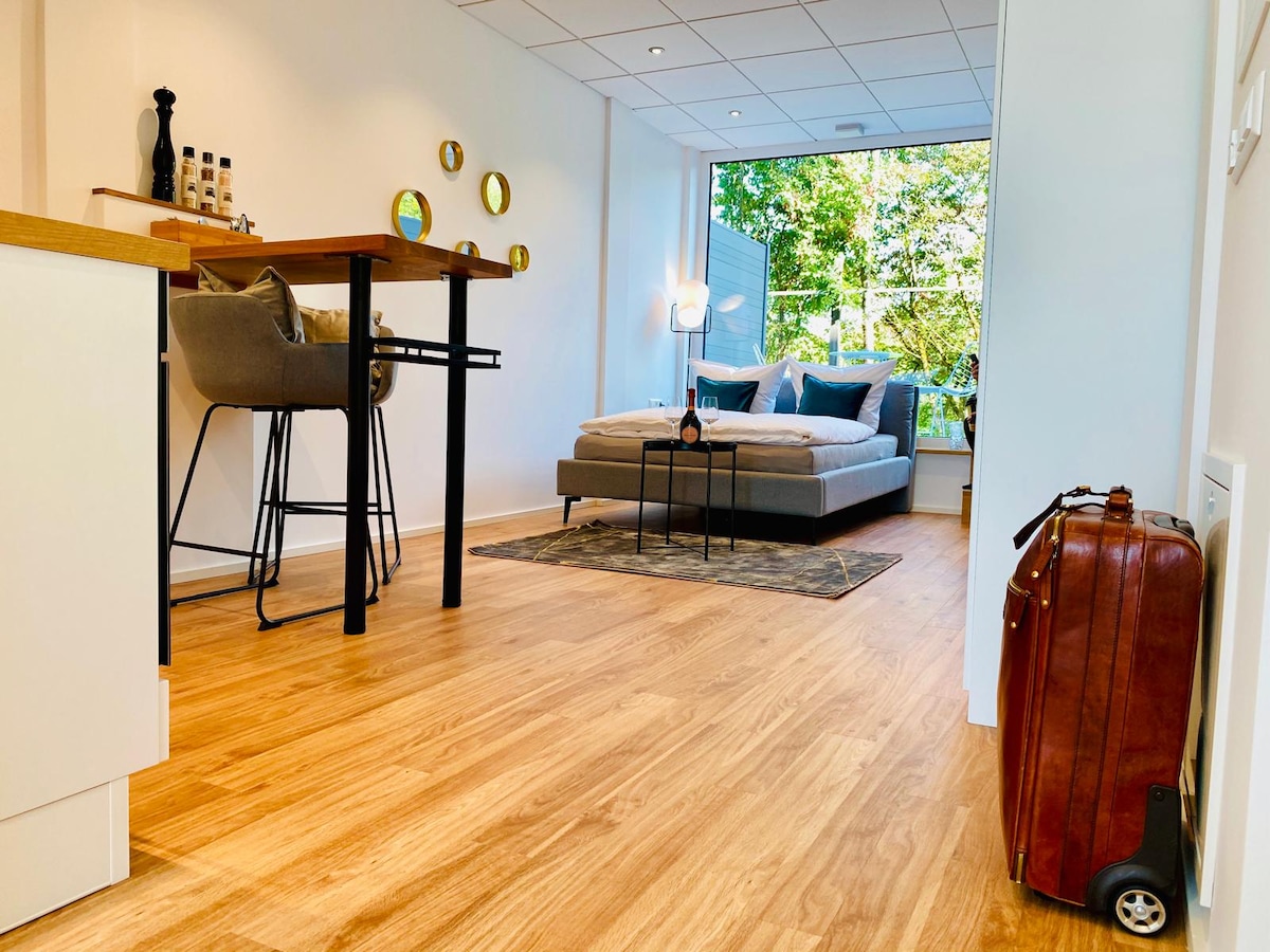 Hotel? Wohnung? -> Motel42 - Temporary Living! ANKOMMEN. LOSWOHNEN. WOHLFÜHLEN - Genau das können Sie in unseren Motel 42 Serviced Apartments! Unsere vollmöblierten und hochwertig eingerichteten Studios vereinen den Wohlfühl-Charakter einer Wohnung mit einem zeitgemäßen Mix aus klassischen und digitalen Services eines Hotels. Egal, ob Sie zwei Nächte oder mehrere Monate bleiben: Das Motel 42 bietet jedem Gast eine urbane Unterkunft im Stil eines modernen Stadthauses.
