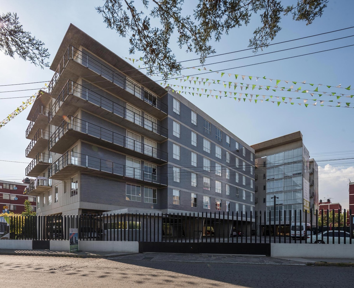 Tu oficina fuera de la oficina. Departamento completo, con estilo vintage-contemporáneo y ambiente natural, ideal para trabajadores, técnicos o equipos de PYMEs que necesiten hospedaje cerca de las zonas industriales de Cuautitlán Izcalli. a minutos de Amazon, Ford, Unilever, San Martin Obispo y Punta Norte. a 25 min del AIFA ¡Productividad, descanso y conectividad en un solo lugar!