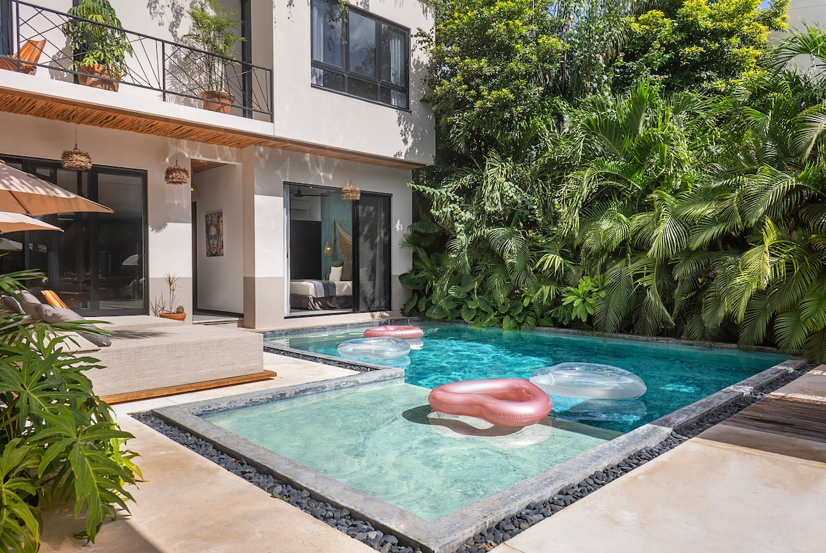 Welcome to Blue Deer Residences! IG: BLUEDEERTULUM Presenting "Hoja Dorada": This stylish 4 bed luxury villa is well thought out and perfect for group celebrations with ample indoor and outdoor spaces, a plunge pool and heated jacuzzi. We offer a boutique experience and pride ourselves in attention to detail and personalized guest relations with a full on-site staff and dedicated concierge - Concierge services are viewable in the listing. If you have any special requests, just let us know!