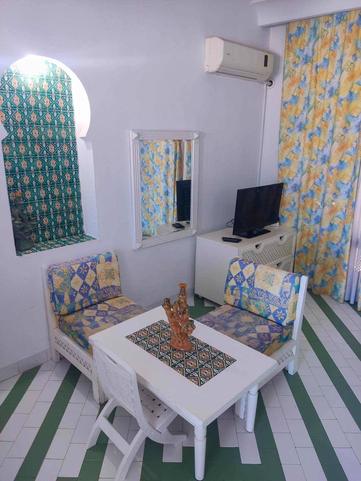 Descubre la comodidad y la comodidad inigualables en esta propiedad céntrica, a solo un minuto de la playa. Con un auténtico estilo tunecino, este estudio recientemente renovado es ideal para una pareja joven que busca un retiro vacacional soleado. ** Lo más destacable de la propiedad:** - Estudio totalmente equipado - Aire acondicionado - Piscina del resort (disponible según la temporada) - Acceso privado a la playa. - Aparcamiento gratuito en las instalaciones Disfruta de los servicios prémium y la ubicación excepcional que ofrece esta propiedad.