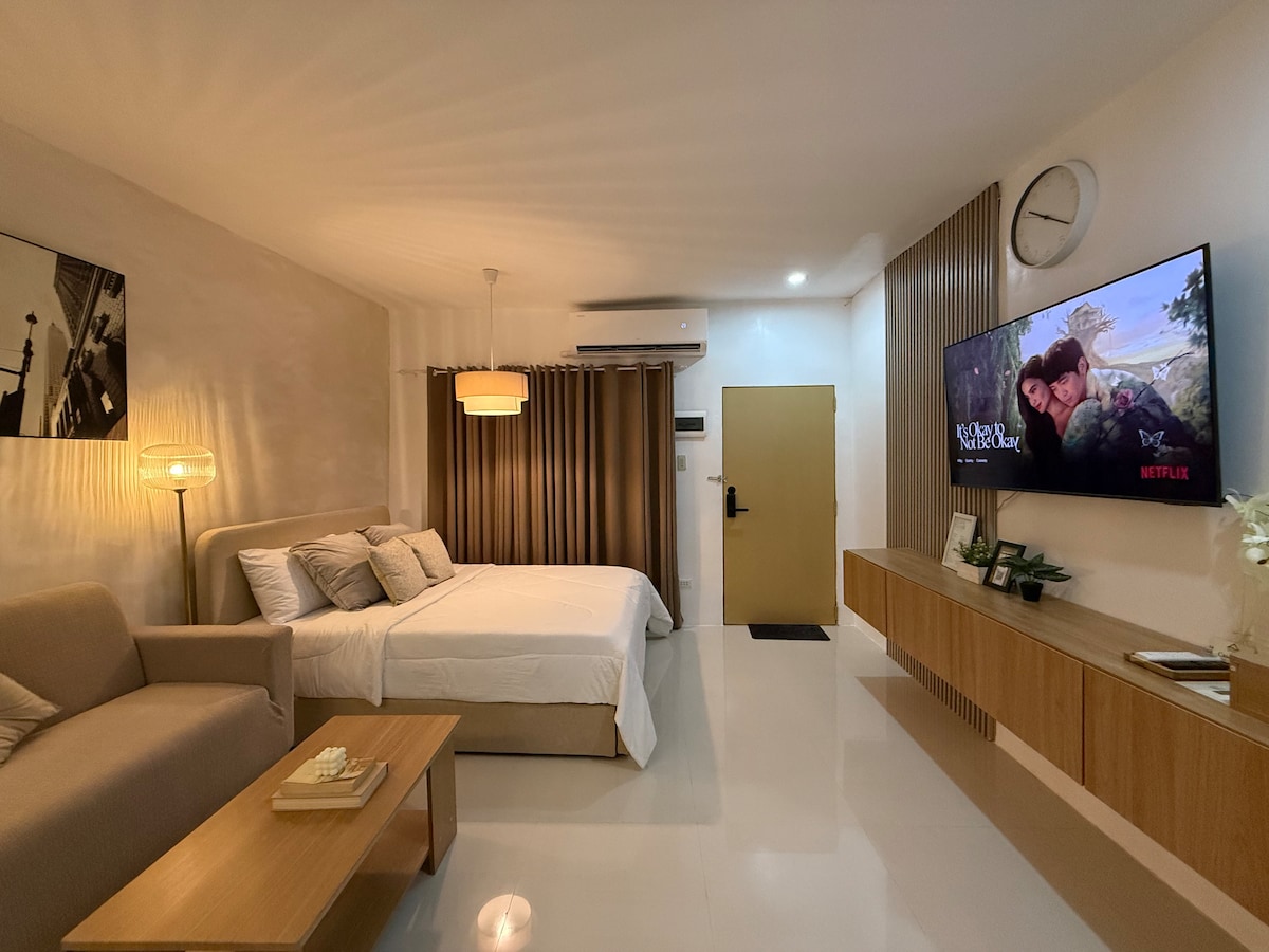 Boho Luxe Studio Unit Entra en un oasis sereno donde el diseño boho-chic se encuentra con la máxima comodidad. Nuestro espacio está cuidadosamente seleccionado con tonos terrosos, patrones vibrantes y texturas naturales para crear un ambiente cálido y acogedor que se siente como en casa.
