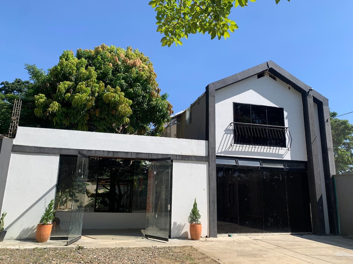 Relaxe em uma casa com muito estilo, tranquilidade e segurança. Contamos com 4 aparelhos de ar condicionado (1 em cada quarto e 1 na sala), com acesso a transporte público, supermercado e serviços de entrega em domicílio. Os quartos têm um ótimo estilo caseiro, e o espaço interno conta com pátio, boa ventilação e jardim externo público. Oferecemos serviço de vigilância 24 horas. É o lugar ideal para passar os dias com sua família e/ou animal de estimação no coração de Urabá, a terra prometida.