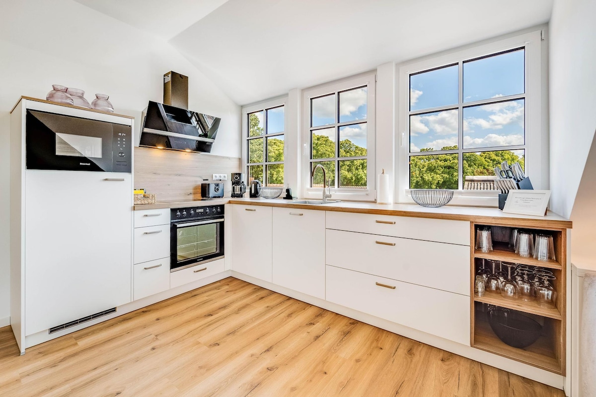 El moderno y elegante apartamento en la planta baja con jardín privado y cocina de lujo perfectamente equipada es el lugar ideal para una escapada a la hermosa región de Westmünsterland. La sala de estar y el comedor, inundados de luz y con una gran mesa de comedor y un cómodo sofá, ofrecen espacio para toda la familia. El dormitorio cuenta con una cómoda cama tamaño king y un amplio armario. El gran jardín con cenador invita a hacer barbacoas y tomar el sol.