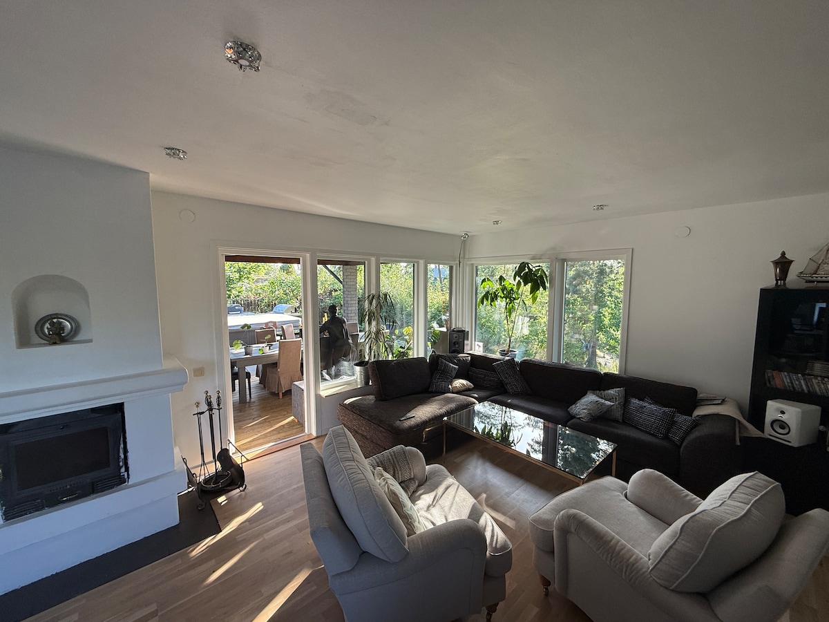 Te damos la bienvenida a un refugio tranquilo donde la naturaleza se encuentra con la comodidad. Esta espaciosa villa se encuentra en una zona privada con vistas al lago y puestas de sol al atardecer. El jardín aislado ofrece sol todo el día, una piscina climatizada en verano y una acogedora bañera de hidromasaje en invierno. Disfruta de acogedores espacios interiores y exteriores, perfectos para relajarse o socializar. A pesar del entorno sereno, el centro de la ciudad de Estocolmo está a poca distancia en auto o autobús, y ofrece lo mejor de ambos mundos.