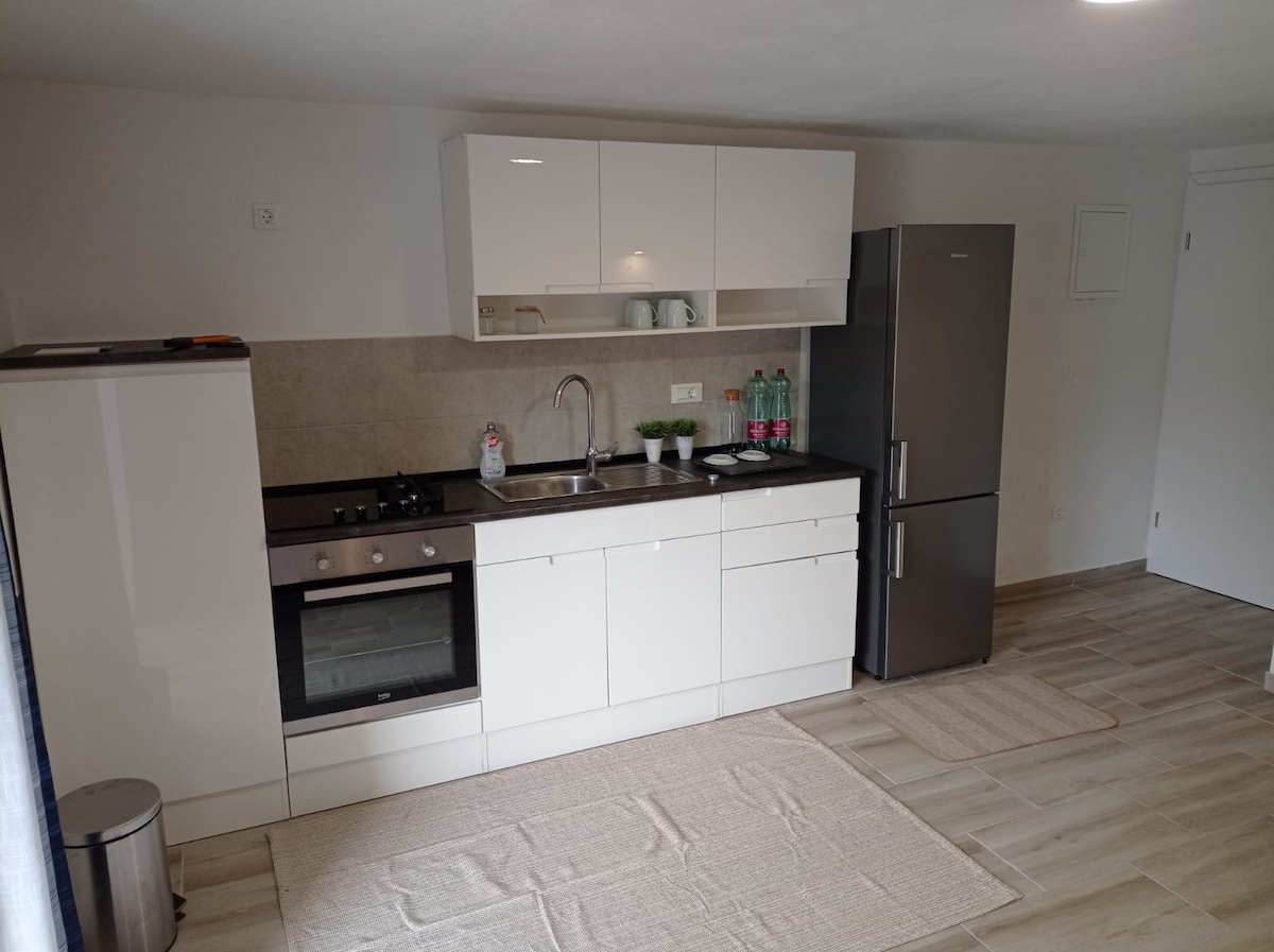 Apartamento nuevo y moderno, está situado en una hermosa isla Dugi otok, en un pequeño pueblo de pescadores Brbinj. Nuestro apartamento es ideal para relajarse de la caótica vida de la ciudad. Apartamento de un dormitorio con sala, cocina bien equipada y enorme balcón. El apartamento está en la primera planta que concisos de un dormitorio con cama doble y la sala de estar donde se encuentra el sofá convertible para dos personas.