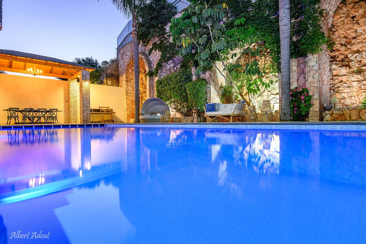 Lleva a tu familia a la encantadora casa en la histórica ciudad de Safed, que puede alojar cómodamente hasta 20 huéspedes. Disfrute de un soplo de aire fresco en el pintoresco balcón o pase el día relajándose junto a la piscina interior privada, totalmente climatizada y disponible durante todo el año. La villa es adecuada para el público religioso / ultraortodoxo. ✔ 4 BR (Capacidad para 20 personas) Balcón✔ privado de la cocina✔ completa ✔ Piscina con temperatura regulada en el interior Estacionamiento gratuito con✔ ✔ Wi-Fi de alta velocidad ¡Obtenga más información a continuación!