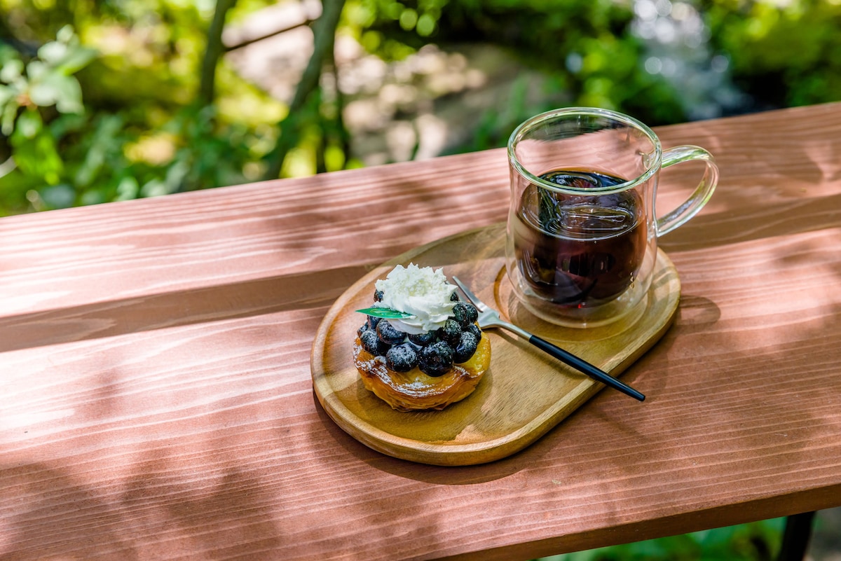 ¡Cocina al aire libre! Disfruta del canto de los pájaros, de la tranquilidad y de la belleza de la naturaleza. Incluye un boleto para el onsen Aguri.