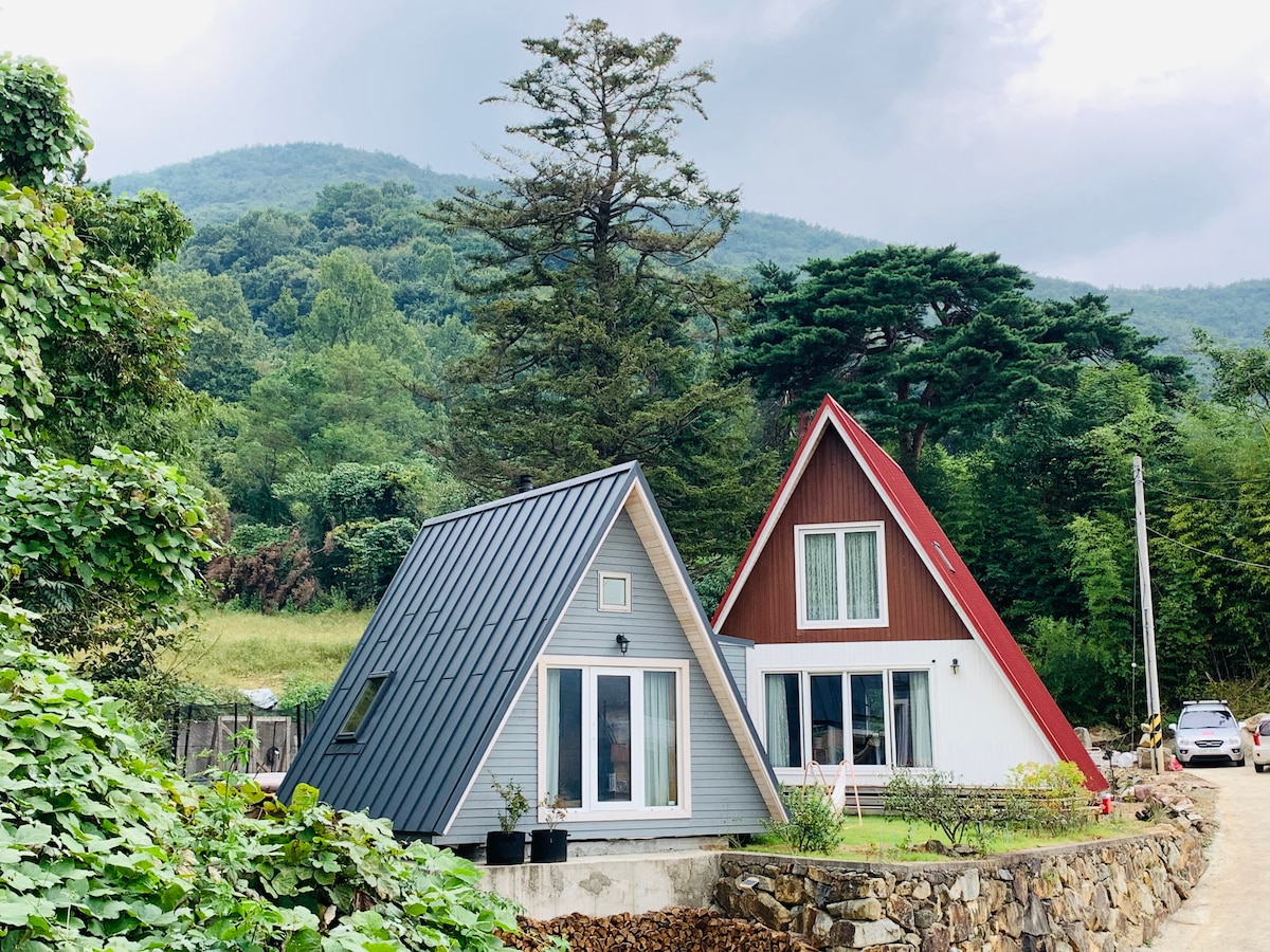 ⭐✨️Cabaña al aire libre con jardín💫🌟 ¡¡🏕Privado!! ¡¡Solo un equipo!! 🍖Barbacoa (no disponible en interiores, solo en exteriores) 🏖Piscina (solo en verano/no agua caliente/cierra a finales de agosto) ♨️Spa al aire libre (solo en invierno/reserva obligatoria/tarifa aparte) * Puede haber restricciones de uso debido a la disminución de la temperatura * Disponible antes de las 8 pm el día de la llegada 🧖♀️Sauna 🔥Vacío 🎡Trampolín ¡4-50 minutos🚘 de Busan! ————————————————— ¡Utiliza la casa⚠️ gris! ¡La⭐️ casa roja es donde vive el anfitrión! ————————————————— Marca de casas con estructura de A con encanto nórdico [AVRAME]. 🏕 En verano, el sonido del arroyo🐳, En invierno, el sonido de la leña🔥 Escápate de la rutina y disfruta de la comodidad emocional. 👉{POINT}👈 Disfruta de un momento de relajación y curación en el jardín. ☺️😌 [Fogata y barbacoa] y [Piscina/Bañera al aire libre] y [Trampolín] La emoción de la vida al aire libre original. En la [sauna finlandesa♨️] y [baño al aire libre] con estufa de leña Deshazte del cansancio del día a día. —————————————————