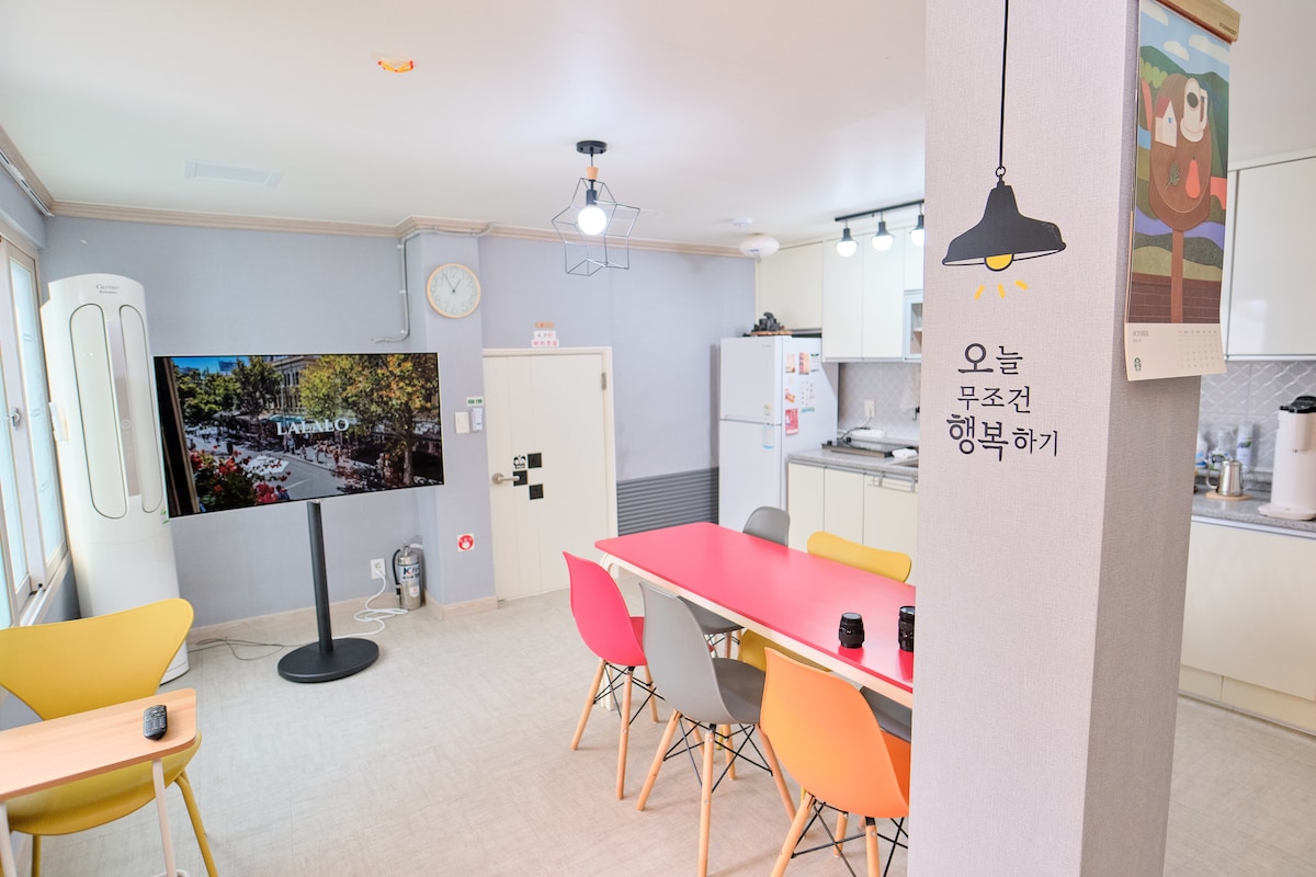 Es un espacio independiente y tranquilo ubicado en el segundo piso de un edificio de tres pisos con una entrada independiente. (Propiedad privada) Se puede cocinar de forma independiente, y los 2 dormitorios, la sala de estar y el baño están bien mantenidos. Ubicado a 1 minuto de Pun's Point Transporte conveniente (5-6 minutos a pie de la parada de autobús interurbano y de alta velocidad, 15 minutos en coche de la estación de Ulsan KTX, 3 minutos en coche de la entrada de la autopista, 20-30 minutos en coche del aeropuerto), y la parada de autobús de la ciudad está justo al lado de la puerta principal, y el acceso a los lugares turísticos circundantes es fácil. 15 minutos a pie de la puerta principal de la Universidad de Ulsan Paseo de 10 minutos a pie por Taehwa River Cheorseo Street (Jardín Nacional) Puedes visitar los principales lugares de interés turístico de Ulsan, como Oegosan Onggi Village, Whale Culture Village, Ulsan Bridge Observatory, Cheongyongam, Sinbulsan Eupseongwon, Mongdongjeongja Beach, Daewangam Park, Iksan Beach, Shinhwa Mural Village y Taehwa River Eupseongwon. Si viaja a Ulsan con su familia, amigos o por negocios, puede descansar cómodamente sin preocupaciones como en su propia casa. En primavera, venga a ver el camino de cerezos en flor y el palacio justo al lado de la casa... En otoño, venga a ver el Jardín Nacional del Río Taehwa~~