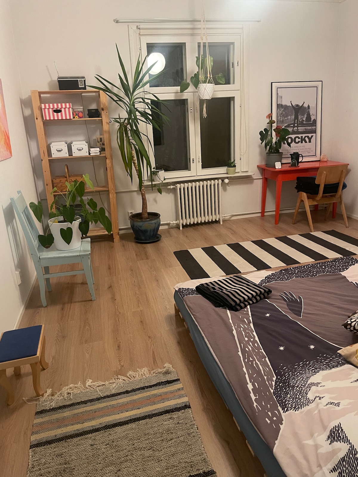 Mysigt, barnvänligt radhus med stor charm - närhet till både natur och centrum. Perfekt för familjen eller ett större sällskap. Privat baksida med direkt närhet till park, tennis- och fotbollsplan samt sköna promenader längs Ume-älven. Goda bussförbindelser. 3 sovrum, 4 sängar och möjlighet till fler bäddar genom madrasser. Elbilsladdare på uppfart och plats för två bilar. Om ni inte vill städa själva tillkommer en städavgift på 1000 kr för er vistelse. Välkomna till Snickargatan!