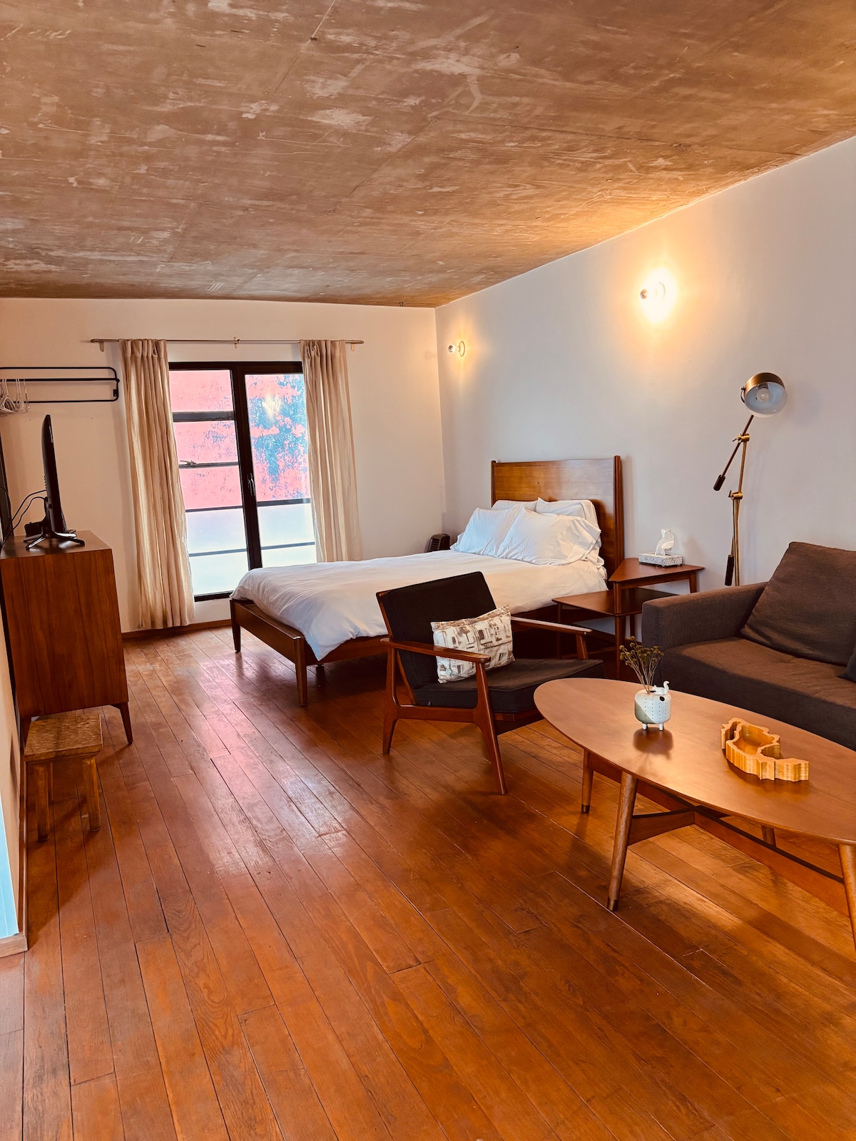 acogedora suite de 60 m2 ubicada en un singular conjunto de casas construidas en 1905 en havre, una de las calles más exclusivas y con mejor oferta gastronómica de la colonia juárez. la casa fue restaurada por completo añadiendo elementos contemporáneos a su arquitectura típicamente porfiriana. el espacio ha sido amueblado con piezas originales estilo mid century modern y otros hallazgos de nuestras busquedas por los anticuarios de la ciudad.