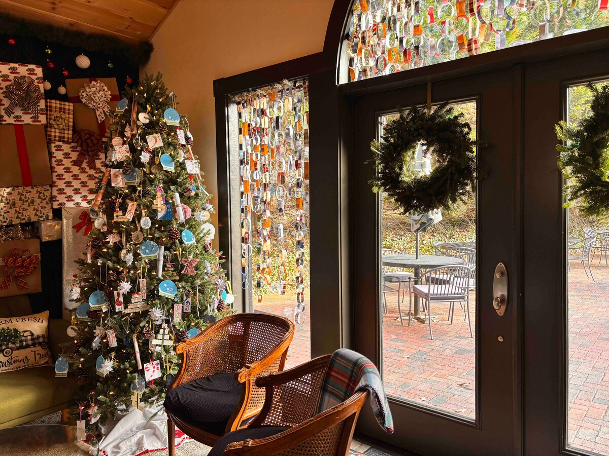 You won’t want to leave this charming, one-of-a-kind place. The Blue Ridge Suite has a private balcony and entrance or use the main entrance on our grand patio. The suite is equipped with a full kitchen and full size fridge. A beautiful queen log bed and a sleeper sofa bed. Relax in front of the fire in your cute little arm chairs. Enjoy the view from the bed or your private balcony. Enjoy the stocked complimentary coffee bar in the Great Room.
