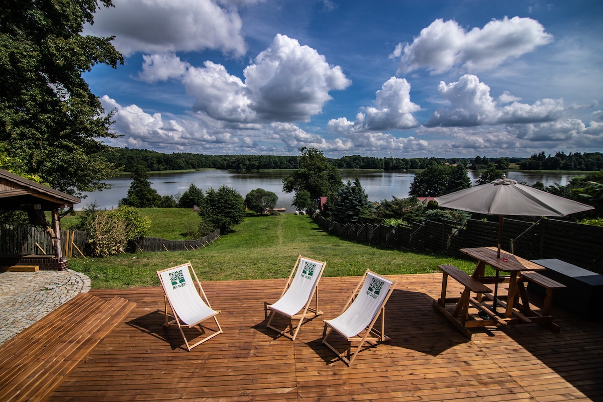 Witam. Wynajmę dom letniskowy usytuowany tuż przy prywatnej plaży 15 metrow od wody. Dom znajduje się między dwoma jeziorami . Na dużej działce jest grill,miejsce na ognisko, domek zabaw dla dzieci, zadaszony taras, własna plaża,rower wodny,łódka, hamaki .Do lasu jest około 400m a do sklepu ok 700m.