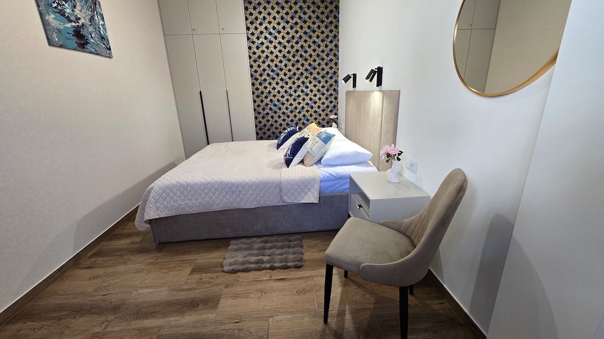 Un apartamento en una ubicación perfecta en el centro de la ciudad. Construcción nueva. Totalmente equipado (nevera, lavadora, placa de inducción, microondas, horno, TV de 55", WiFi, cocina pequeña con todos los utensilios de cocina y comida). Un parque infantil en el patio. Estacionamiento con un gran número de espacios de estacionamiento, pagaderos de 9:00 a. m. a 5 p. m. de lunes a viernes. Fuera de este horario y gratis los fines de semana. Quedamos a la espera de tu llegada. Ofrecemos descuentos atractivos para estancias más largas.