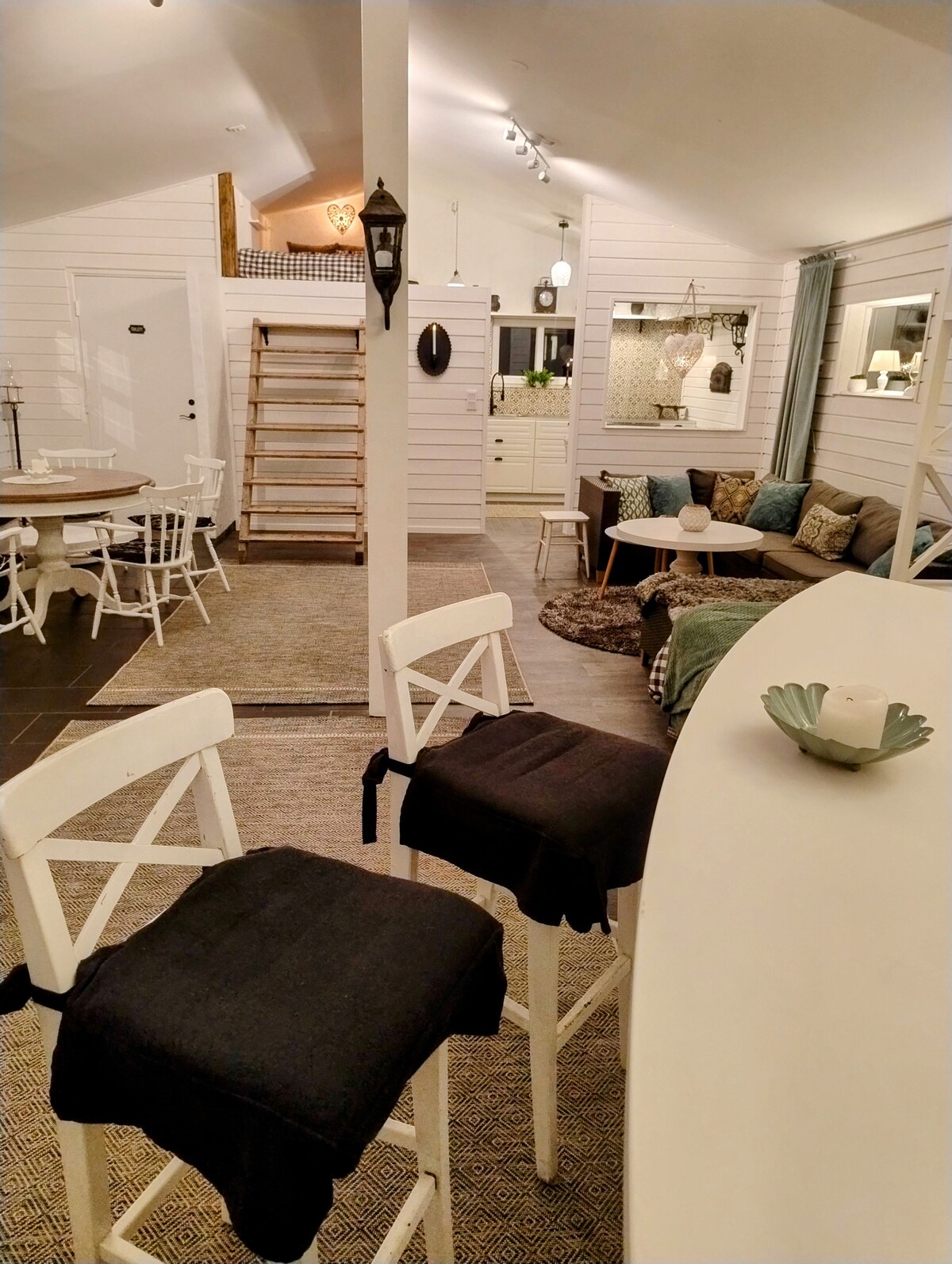 Bienvenido a esta acogedora casa flotante de 30 metros cuadrados con unas vistas impresionantes del lago Aspen, perfecta para los amantes de la naturaleza que buscan paz y relajación. La cabaña se encuentra justo al lado del agua y cuenta con una pequeña cocina, una sala de estar y un loft para dormir. El baño y el inodoro se encuentran a 30 metros de la cabaña en el sótano del edificio principal. Disfruta del café de la mañana junto al lago, date un chapuzón en el agua clara, ve a pescar o explora los hermosos alrededores.